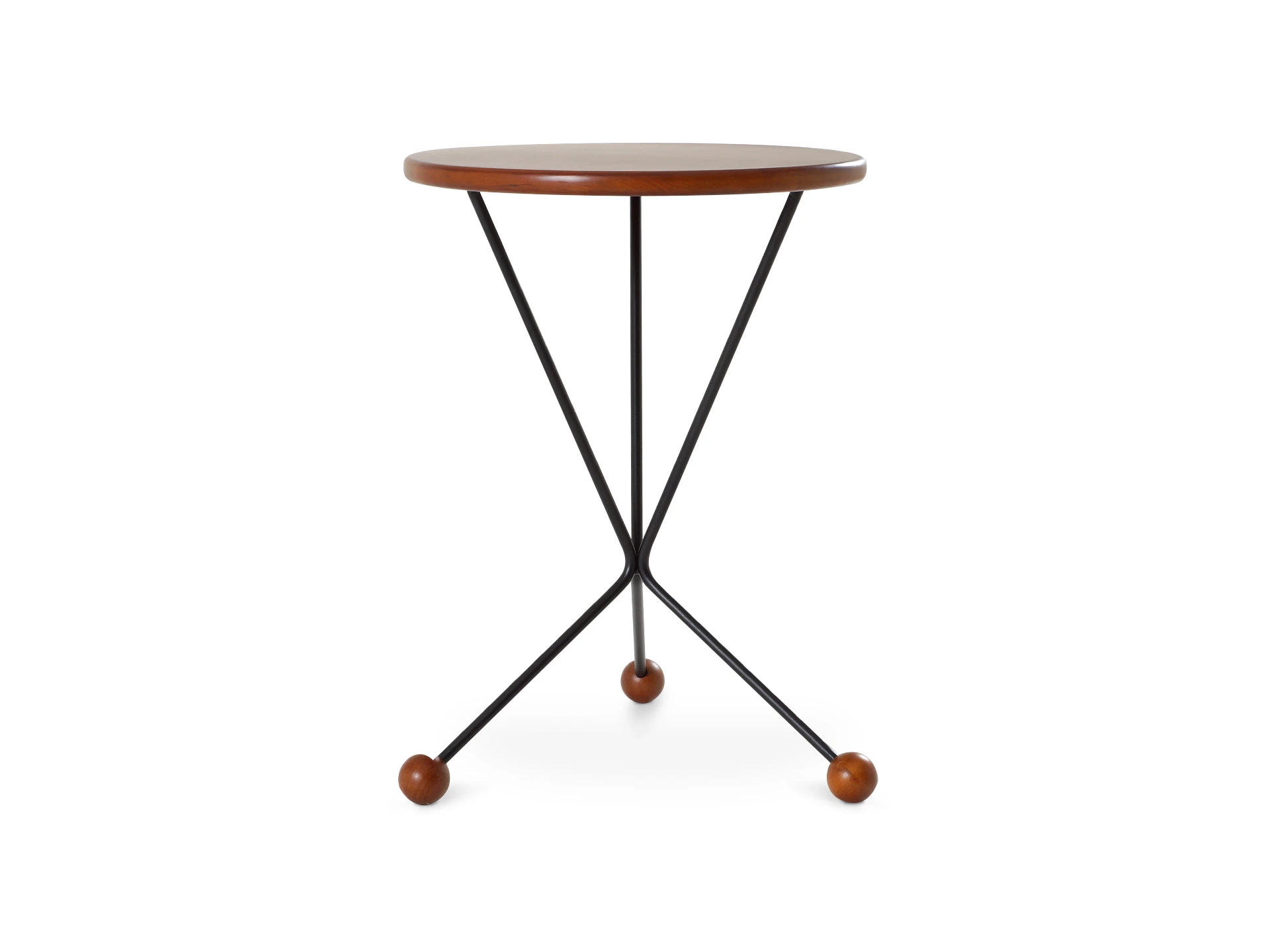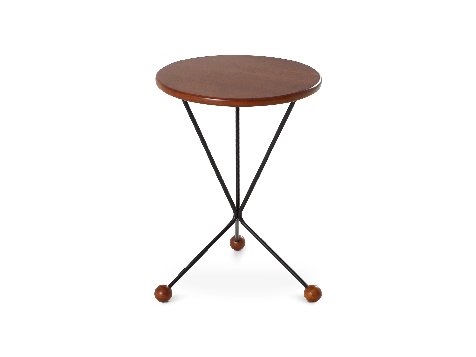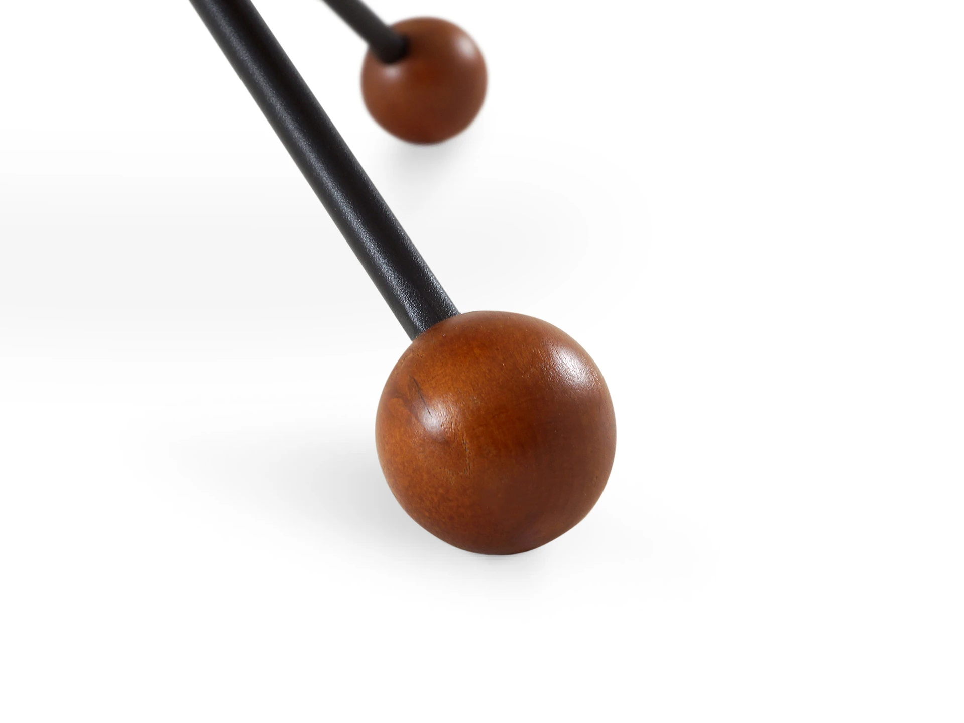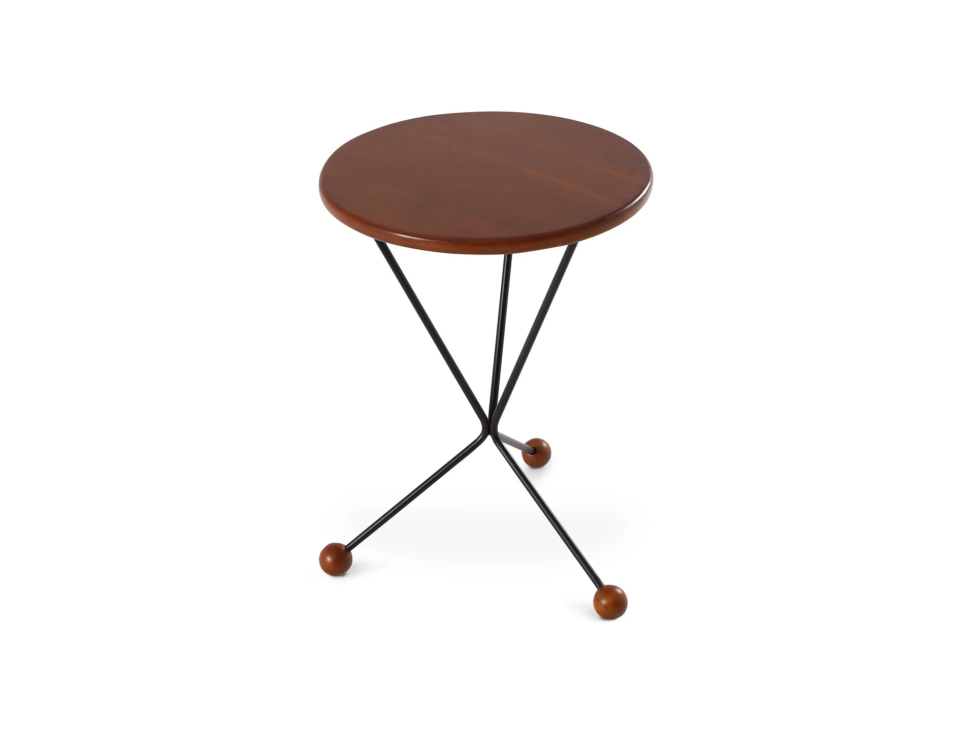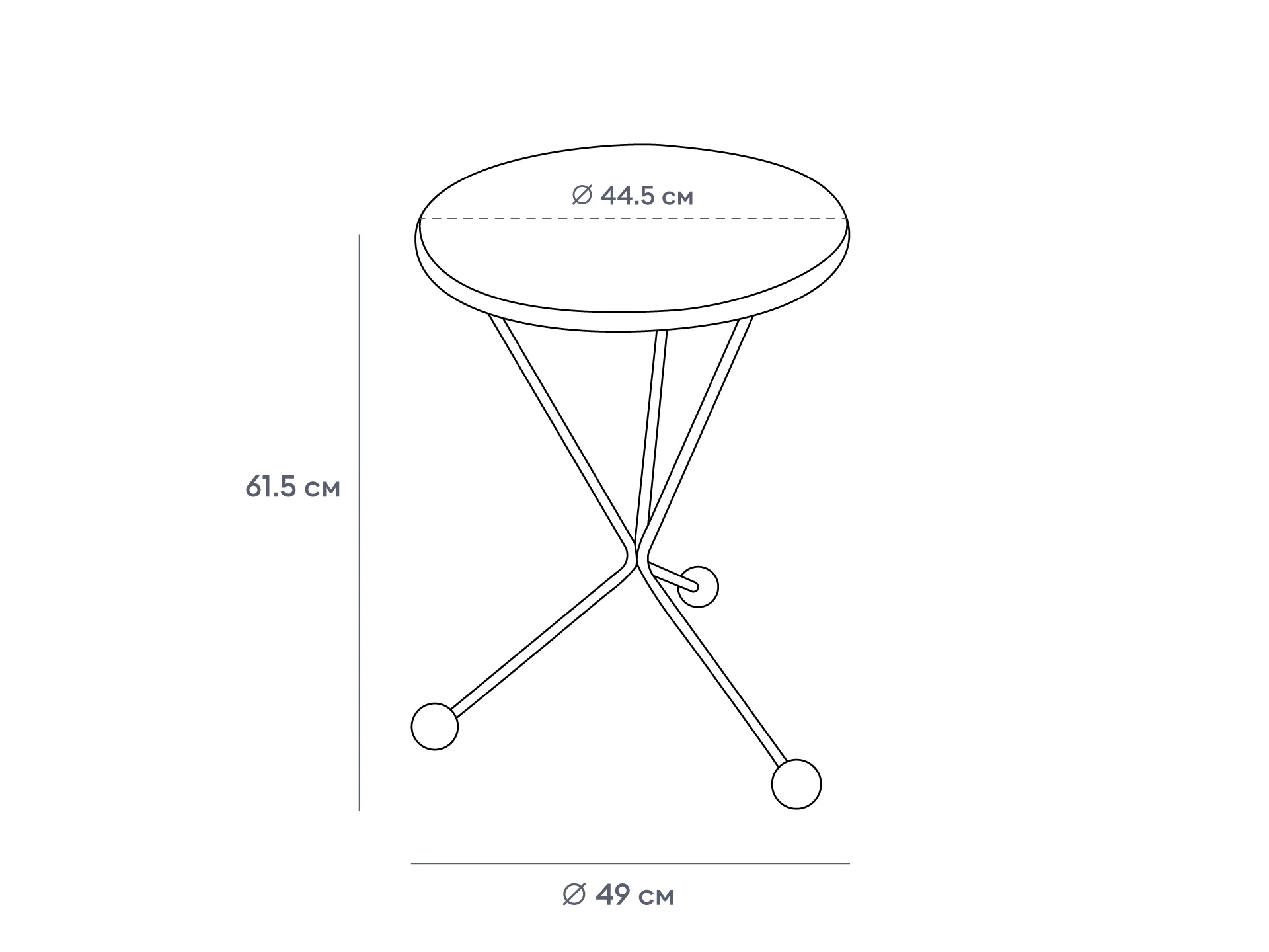 Материал столешницы - массив дерева в дубовом шпоне цвета орех, материал ножек - металл с порошковым покрытием черного цвета. На опорах установлены три наконечника в форме шаров из массива дерева в цвете орех.
