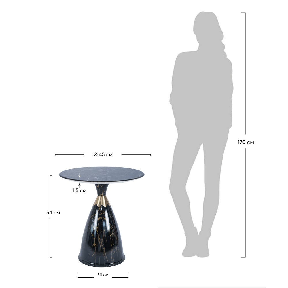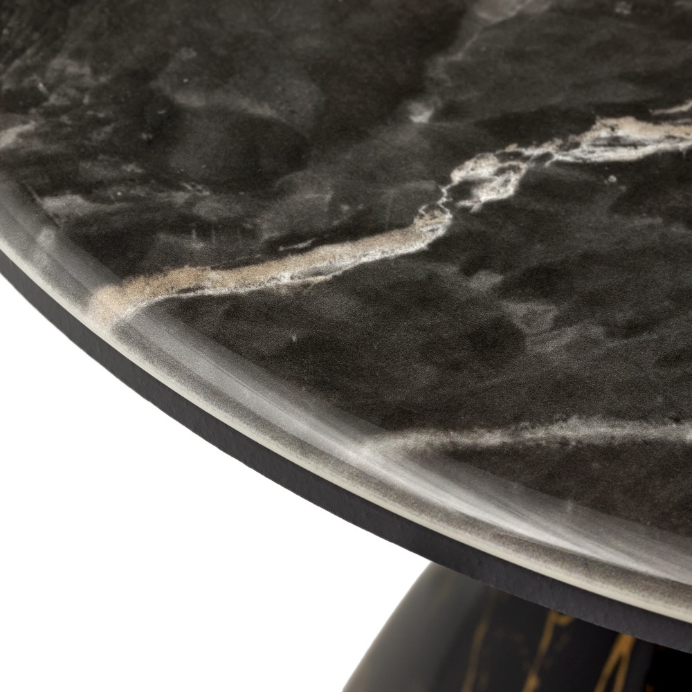 Изготовленный из высококачественных материалов, столик Secret гарантирует надёжность и долговечность. Оригинальное сочетание основания из керамогранита и металлической ножки с эффектом мрамора выделяет его среди других предметов мебели.