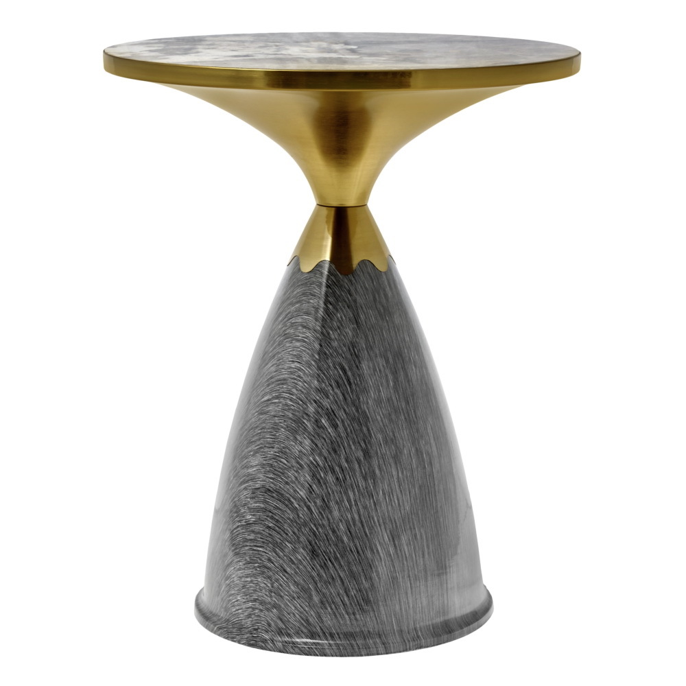 Изящное золотое обрамление по краю основания придаёт столику винтажный вид и делает его идеальным выбором для тех, кто ценит стиль и элегантность. Круглая форма и компактные размеры делают столик универсальным и позволяют использовать его не только в качестве журнального столика, но и для других целей. Благодаря своей универсальности и легкости, столик Secret может использоваться не только как журнальный столик, но и как прикроватная тумба или дополнительная подставка в любом уголке вашего дома. Его круглая форма и компактные размеры делают его идеальным выбором для как маленьких, так и просторных помещений.