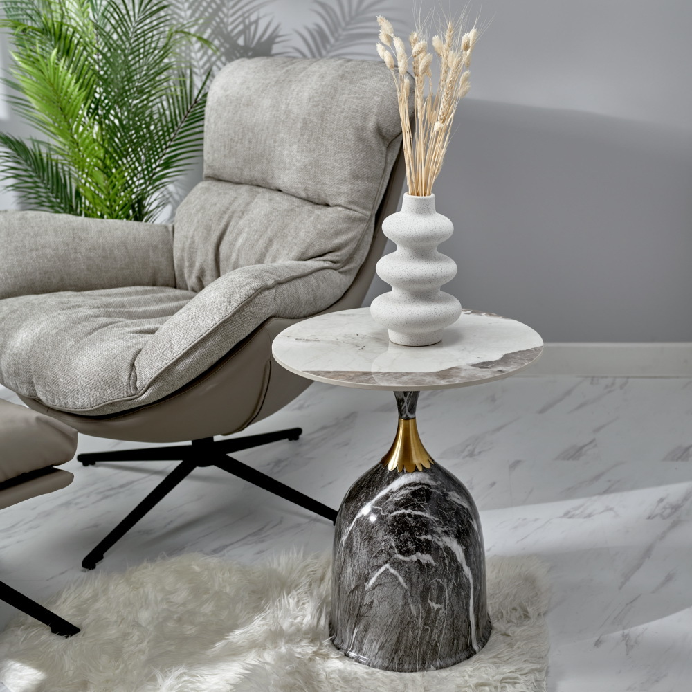 Эксклюзивный стиль - черный или белый металл, металл с ножкой под дерево, керамогранит с ножкой под мрамор или латунное покрытие создает уникальный дизайн столика Stupa, который станет прекрасным акцентом в вашем доме. Его круглая форма и компактные размеры делают столик универсальным и позволяют использовать его не только в качестве журнального столика, но и в различных других функциональных целях.