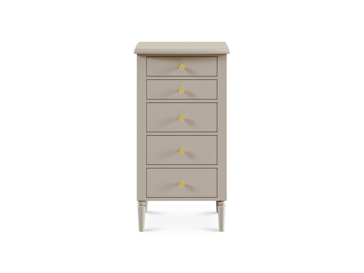 Комод имеет 5 выдвижных ящиков. Рекомендуется крепить к стене.