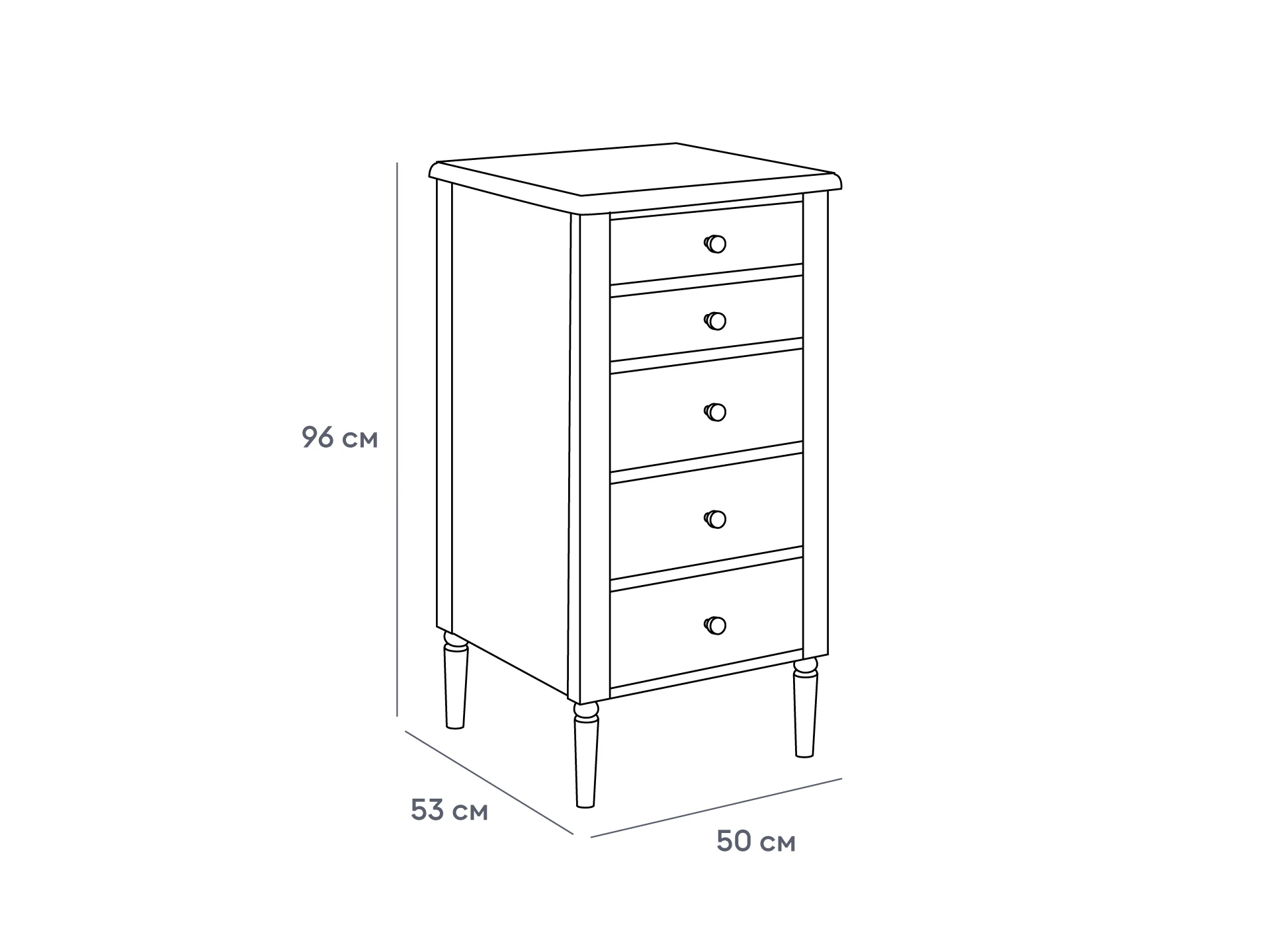 Комод имеет 5 выдвижных ящиков. Рекомендуется крепить к стене.