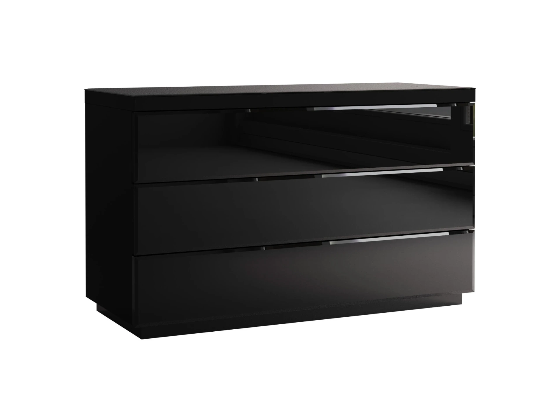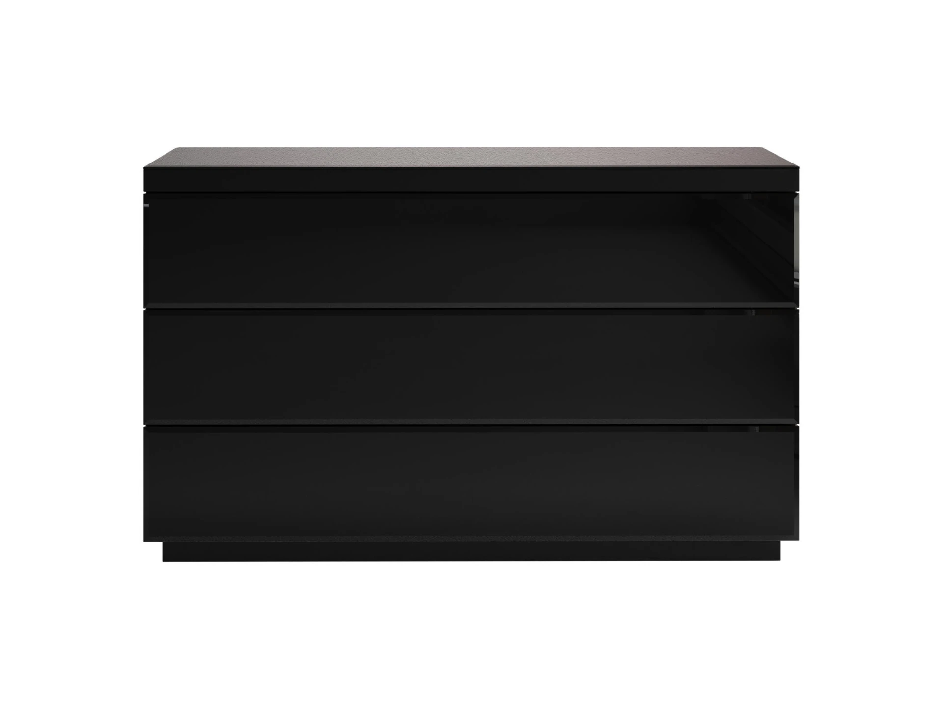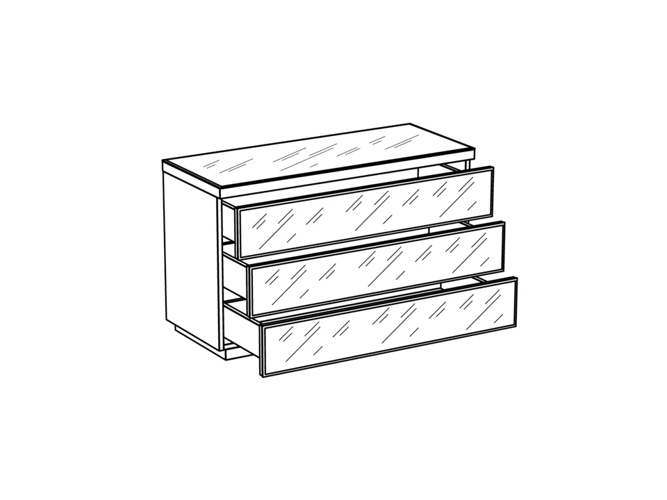 Комод с 3 выдвижными ящиками, открывающимися по принципу «нажал-открыл». Фасады ящиков и верхняя поверхность комода декорированы стеклом.|Комод рекомендуется крепить к стене.