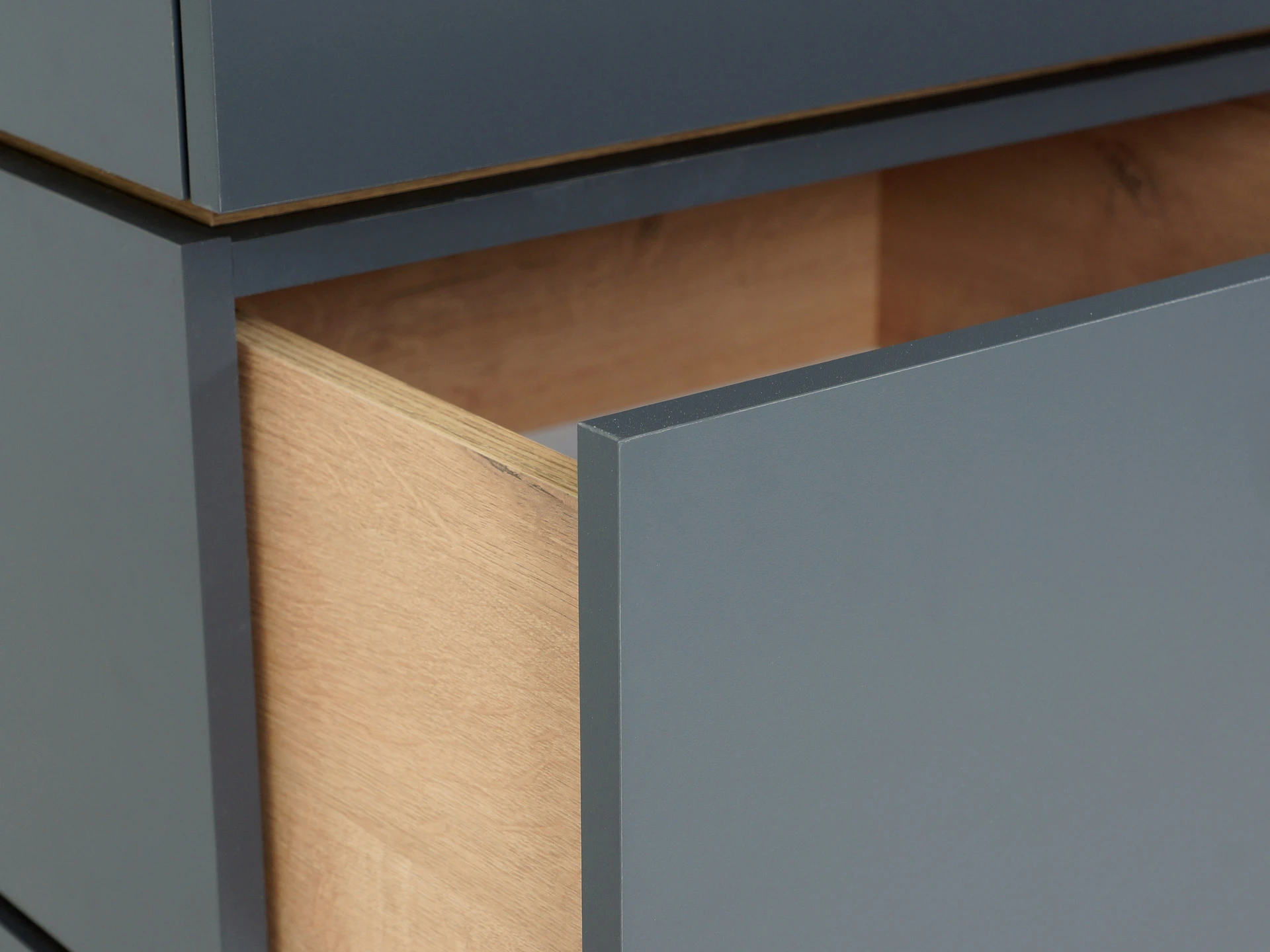 В каждой секции ящик на скрытых направляющих Push to open.