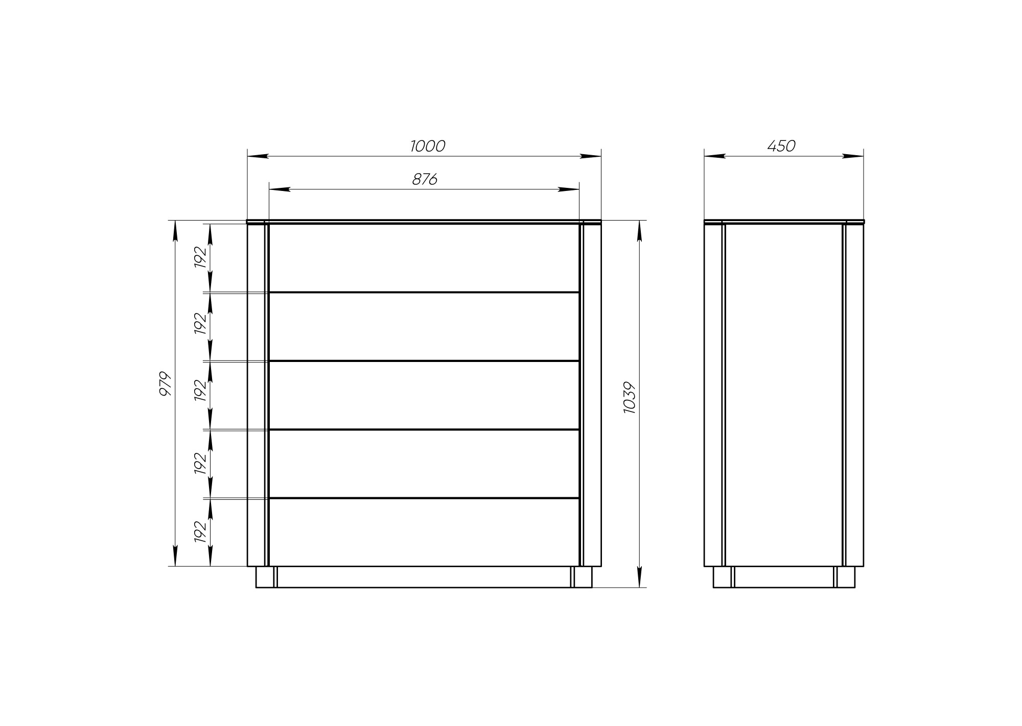Комод Tammi 5 ящиков ширина 100 см (молочный)