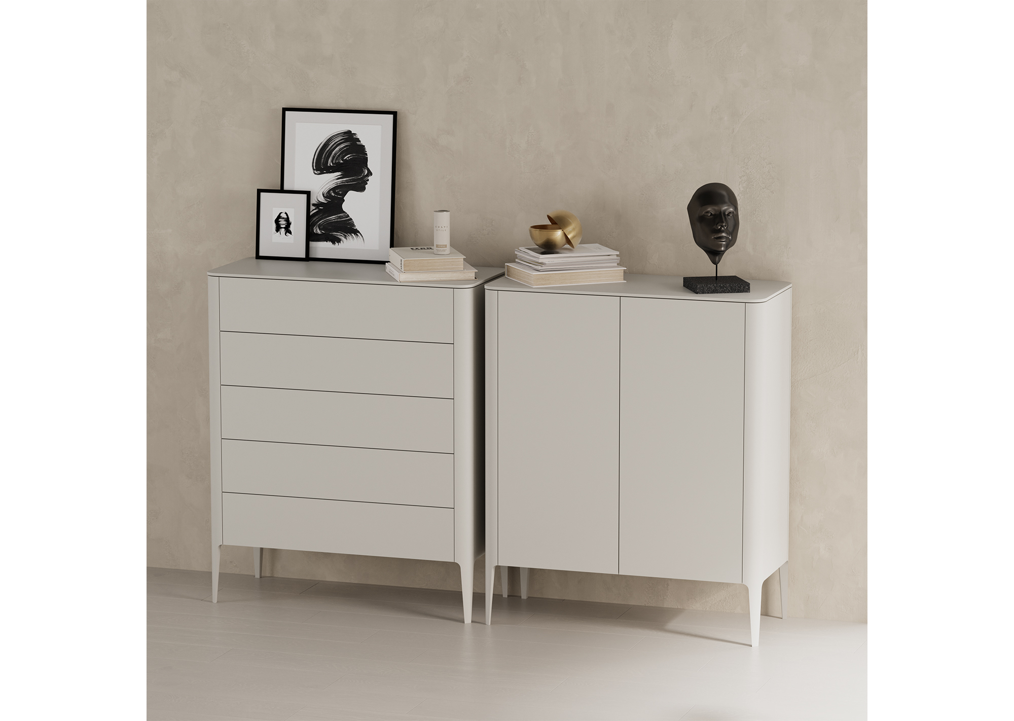 Комод Type 5 ящиков ширина 100 см (серо-бежевый)
