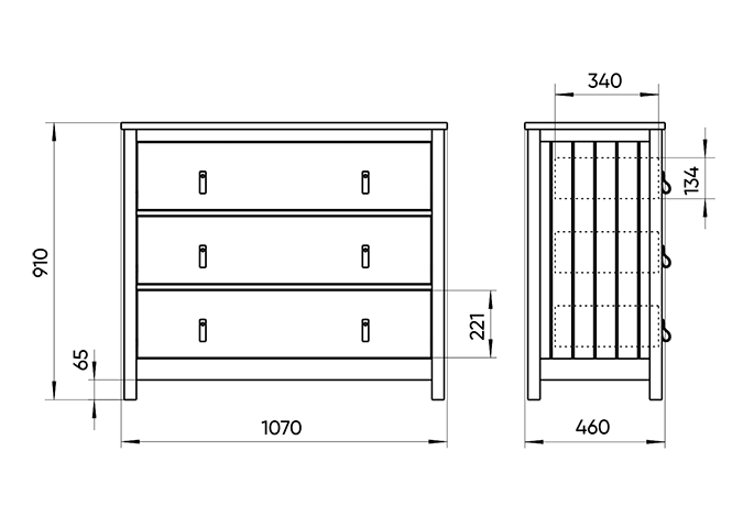 Комод wood с 3 ящиками имеет прочный каркас из массива бука, корпус из безопасного мдф под эмалью.