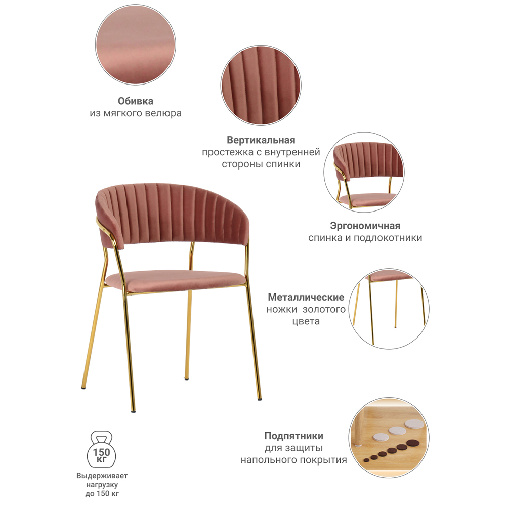 Мягкие спинка и сидение, оригинальный каркас и опоры с декоративным эффектом технологии золочения хромированных деталей.