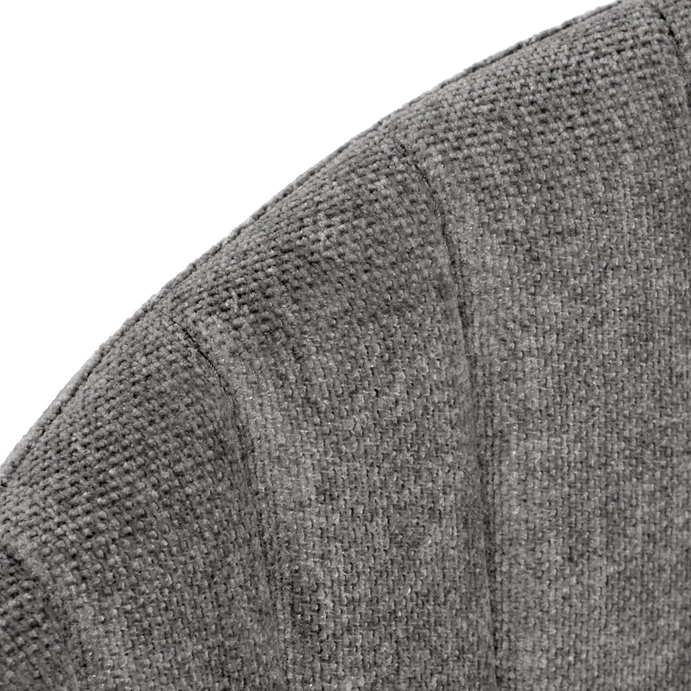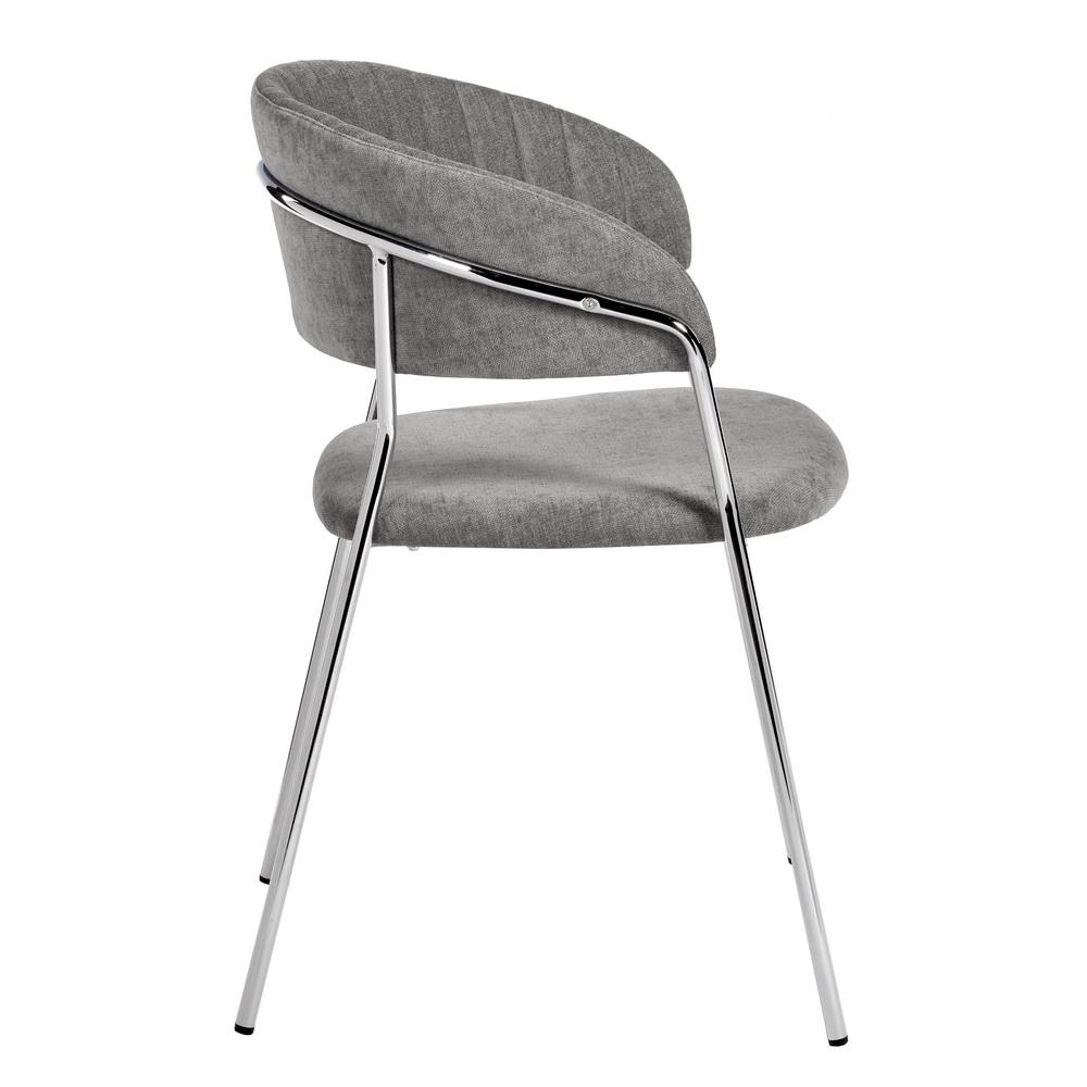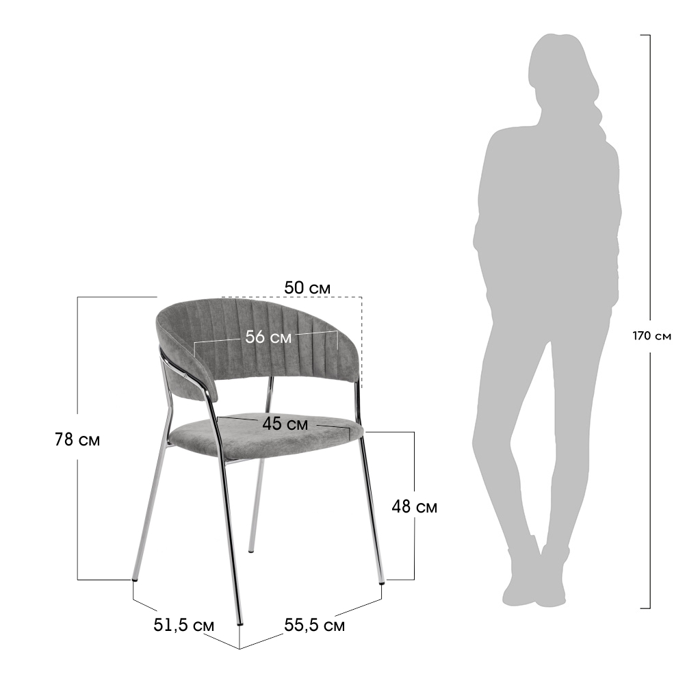 Обивка из качественного серого вельвета не только приятна на ощупь, но и отличается высокой износостойкостью. Она добавляет обстановке уют и текстуру. Прочные хромированные ножки из металла обеспечивают надежную опору и придают конструкции легкость и визуальную воздушность.