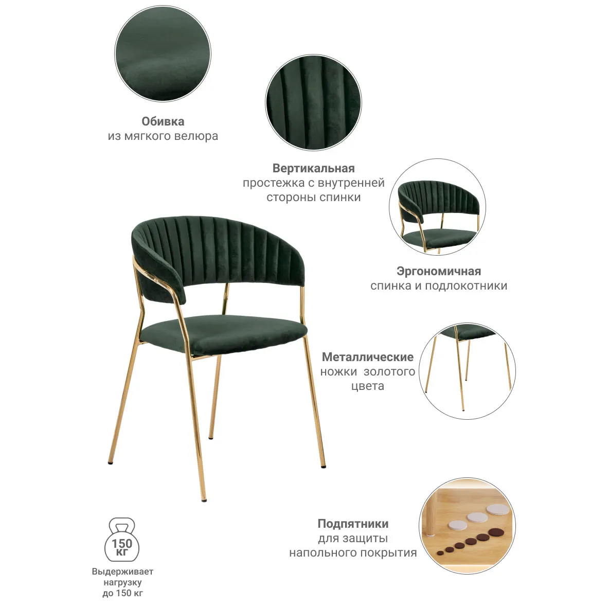 Изящные золотые ножки, выполненные из металла, эффектно контрастируют с насыщенным цветом сиденья. Они придают конструкции визуальную легкость и делают ее стильным акцентом в гостиной, столовой или кухне.