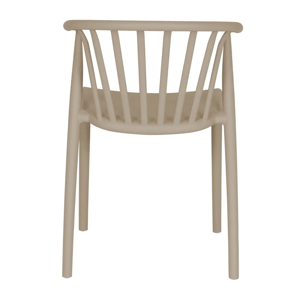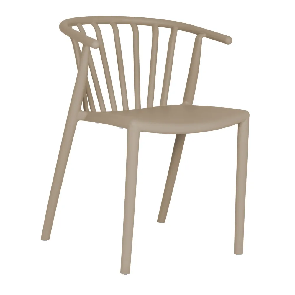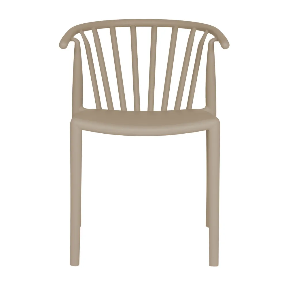 Venice — пара стульев, которая «собирает» обеденную зону одним тёплым штрихом. Оттенок капучино выглядит мягко и благородно: он подчёркивает зелень сада, гармонирует с деревом террасы и легко вписывается в спокойные интерьерные палитры. Универсальный силуэт одинаково органично смотрится и в классическом окружении, и в современном пространстве — без лишнего декора, но с выразной дизайнерской линией. Сиденье, спинка и ножки выполнены из пластика на основе полипропилена — практичного материала для активного сезона и ежедневных встреч за столом.