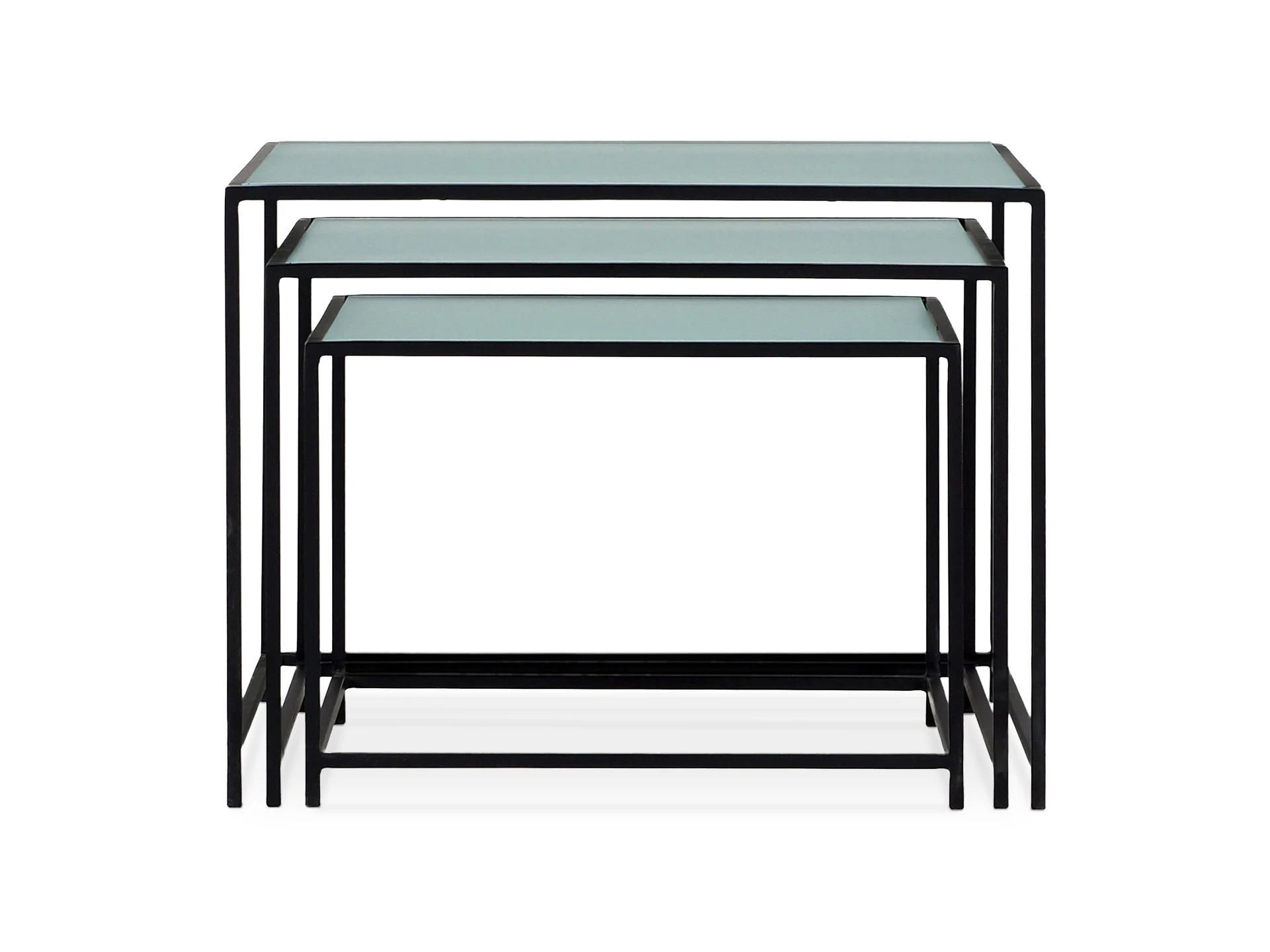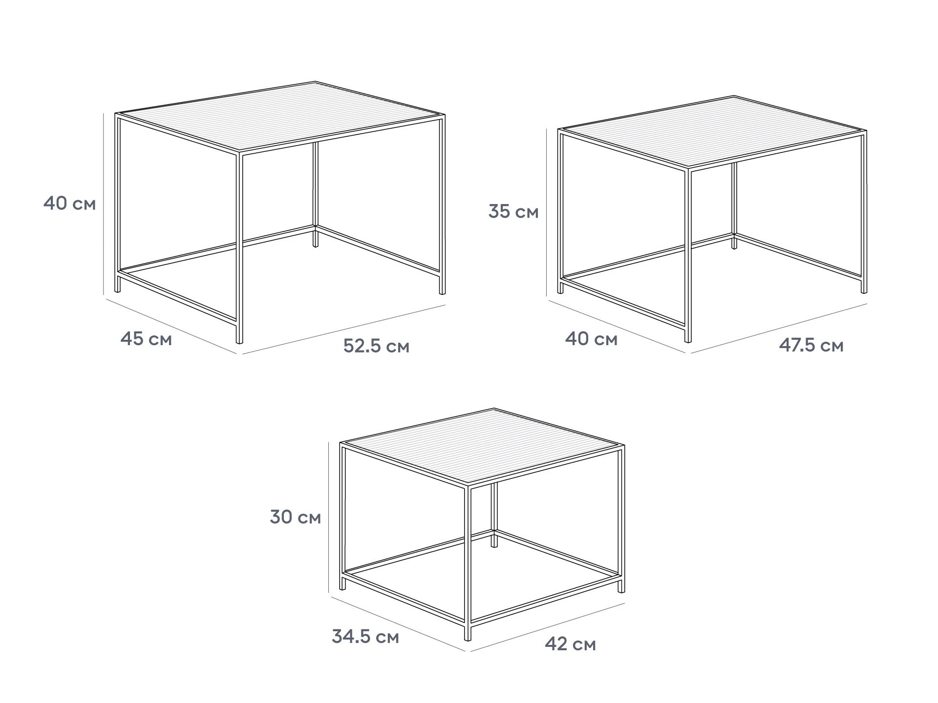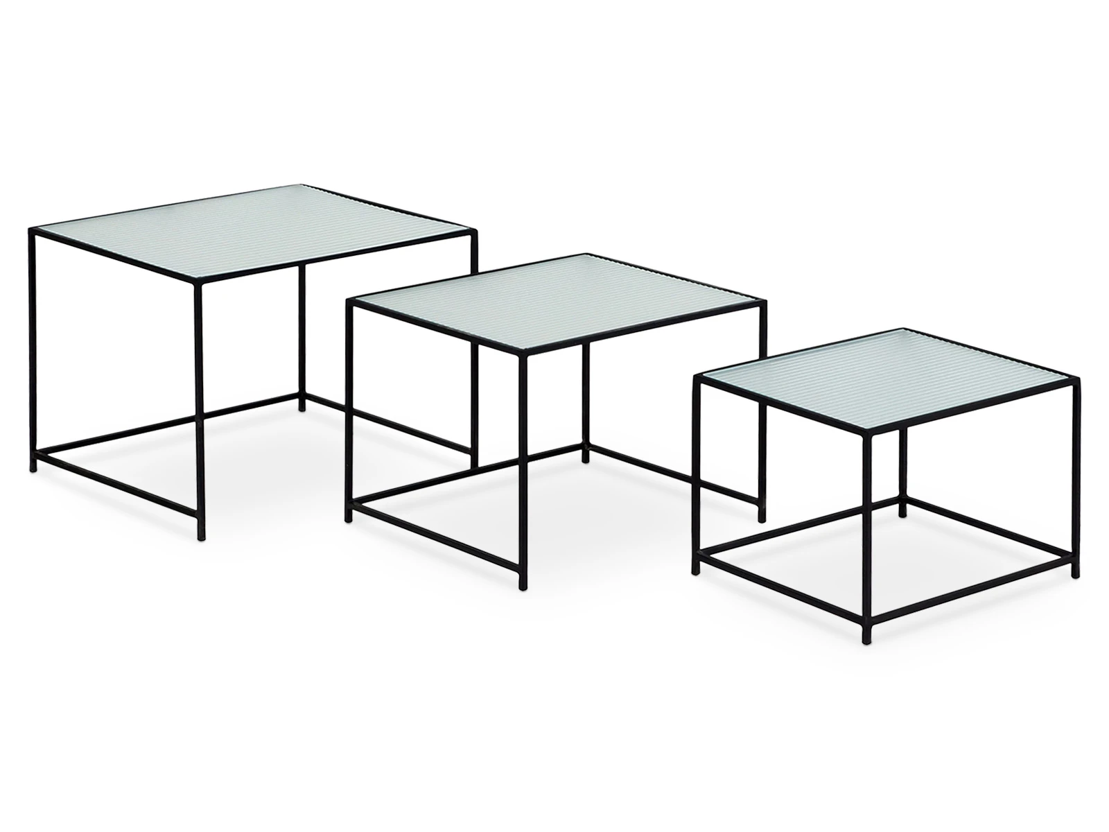 Каркас металлический с черным матовым покрытием. Стеклянная столешница выполнена из прозрачного рифленого стекла. Столешница укладывается сверху на резиновые демпферы, расположенные в углах каркаса.