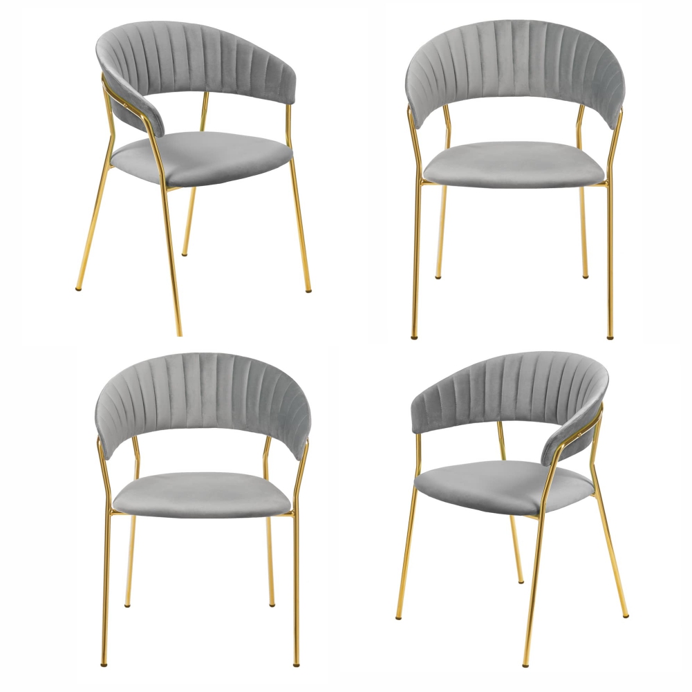 Комплект из четырех стульев Turin в серых тонах с золотыми ножками — это идеальное сочетание современного дизайна и роскоши. Модель станет ярким акцентом в гостиной, столовой или офисе, демонстрируя безупречный вкус.