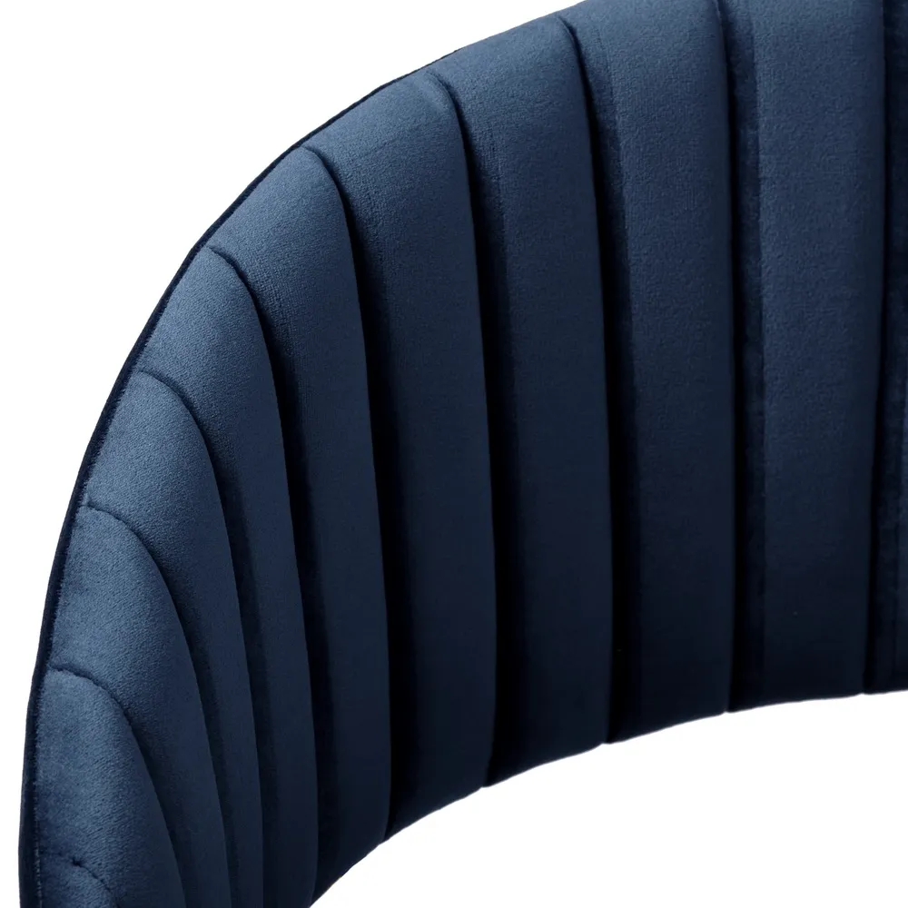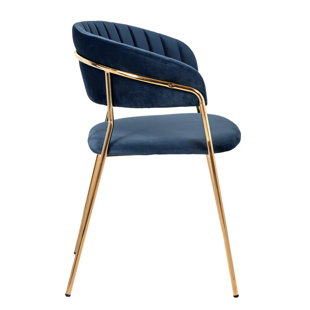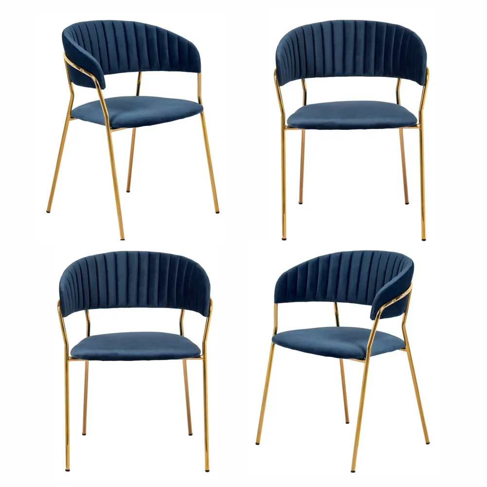 Комплект из четырех стульев Turin создает в интерьере атмосферу утонченной роскоши. Глубокий синий цвет велюровой обивки наполняет пространство благородством и спокойствием. Этот мягкий и приятный на ощупь материал обеспечивает комфорт во время продолжительных трапез или дружеских встреч.