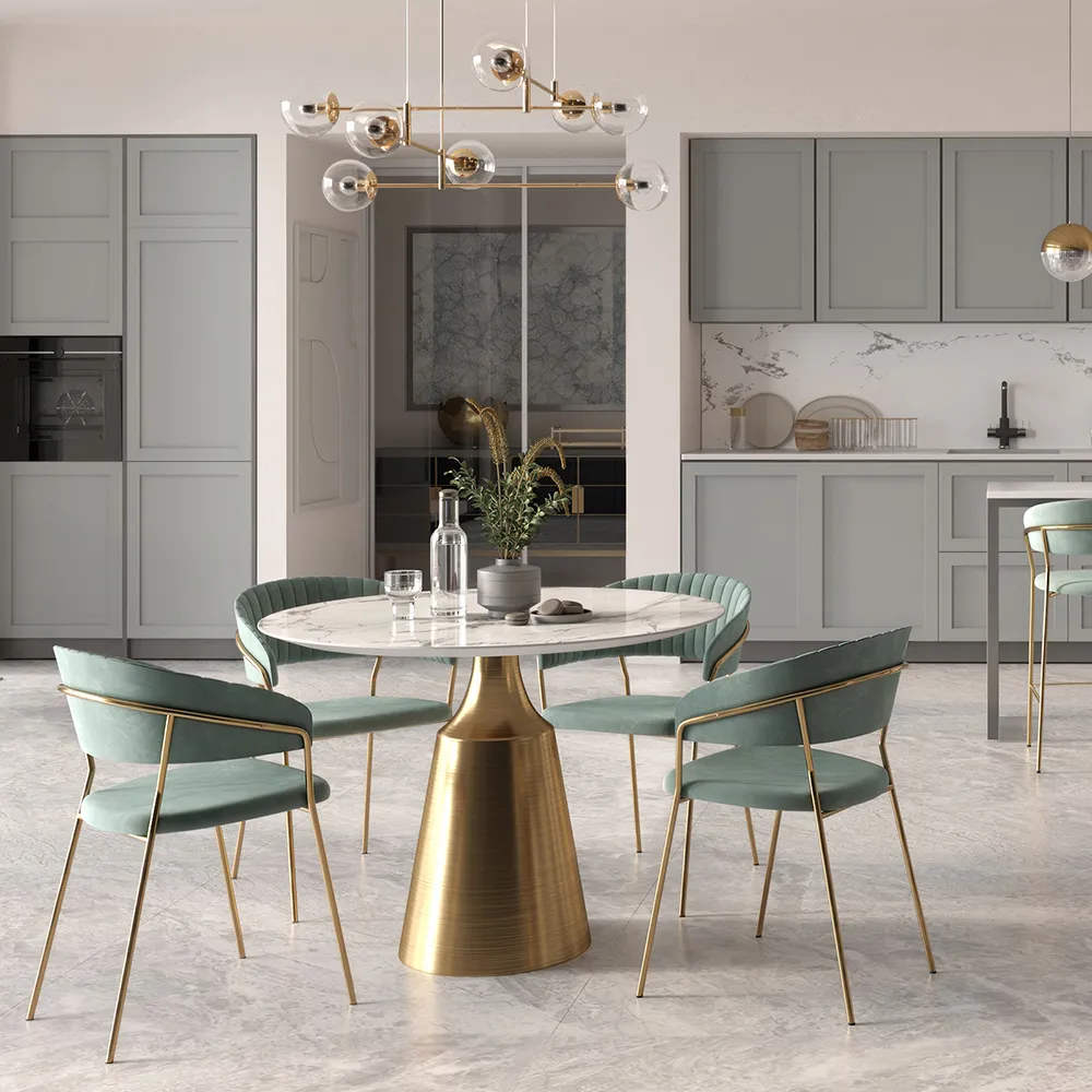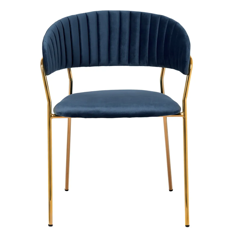 Элегантный контраст создают золотые ножки из прочного металла. Они придают дизайну визуальную легкость и невероятную устойчивость. Сочетание синего велюра и золотого металла делает стулья Turin ярким акцентом в столовой зоне или гостиной.