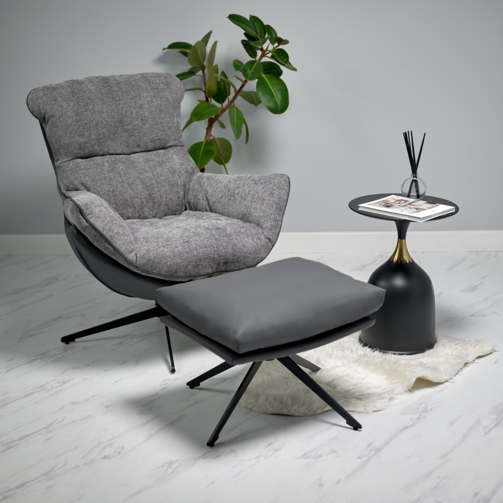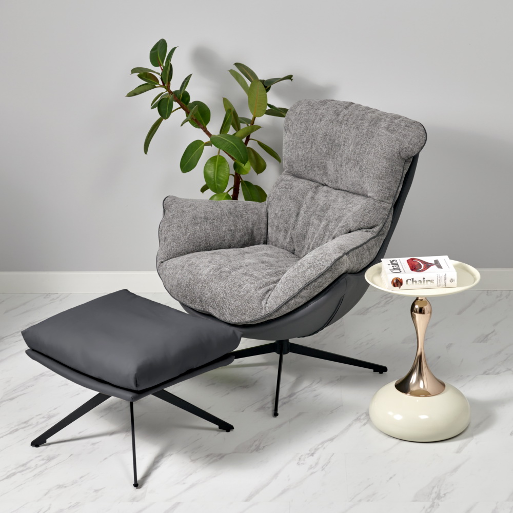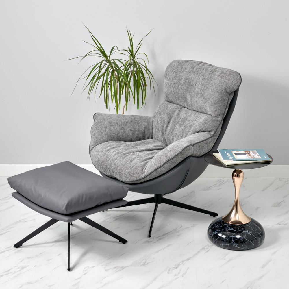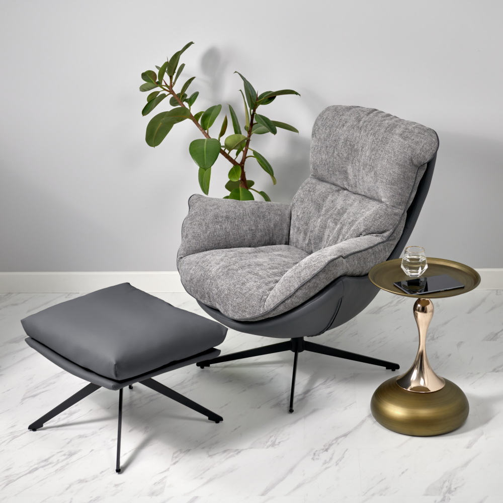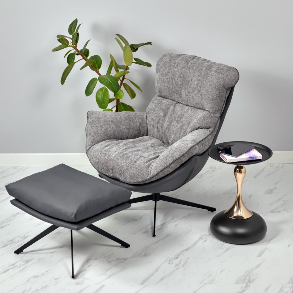 Лаундж-кресло вращается на 360 градусов, и для полного релакса советуем дополнить его удобной оттоманкой.