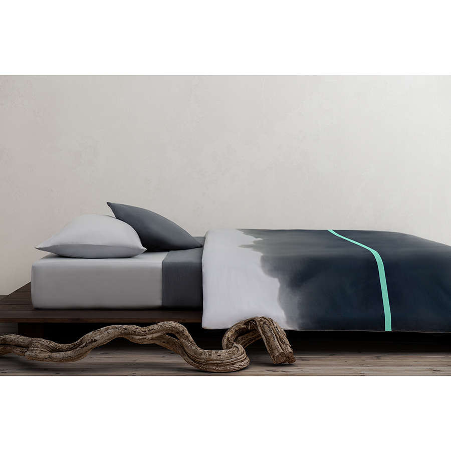Комплект постельного белья из умягченного сатина из коллекции Slow Motion, Mint с авторским принтом, напоминающим игру света и теней в пространстве по-настоящему освежит интерьер спальни. Симметрия, плавные волны и яркая линия на пододеяльнике создают ощущение умиротворения. Умягченный хлопковый сатин плотностью 300 ТС очень похож на шелк. Он мягкий на ощупь, не теряет внешний вид после множества стирок, не линяет и на нем не образуются катышки. Подходит для повседневного использования. Линейка Slow Motion - вторая коллаборация с предметным дизайнером Димой Логиновым.