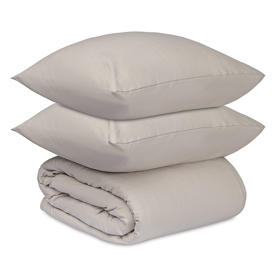 Комплект из двух наволочек и пододеяльника серо-бежевого цвета из коллекции Essential – стильное постельное белье из натуральных материалов высочайшего качества, которое подарит ощущение комфорта во время сна и привнесет в интерьер спальни природную элегантность.