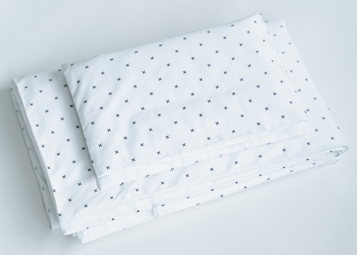 Комплект постельного белья "Плюсики" для подростковых кроватей Состав: пододеяльник 150х200 см, наволочка 70х50 см Материал: 100% хлопок (сатин)