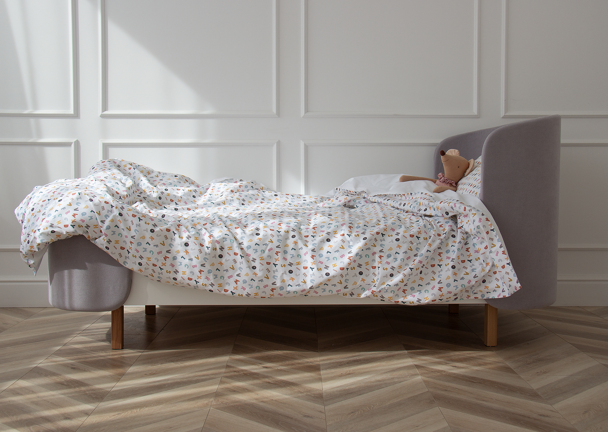 Комплект постельного белья «Разноцветные буквы» (белый, сатин) Состав: пододеяльник 150х200 см, наволочка 70х50 см Материал: 100% хлопок (сатин)