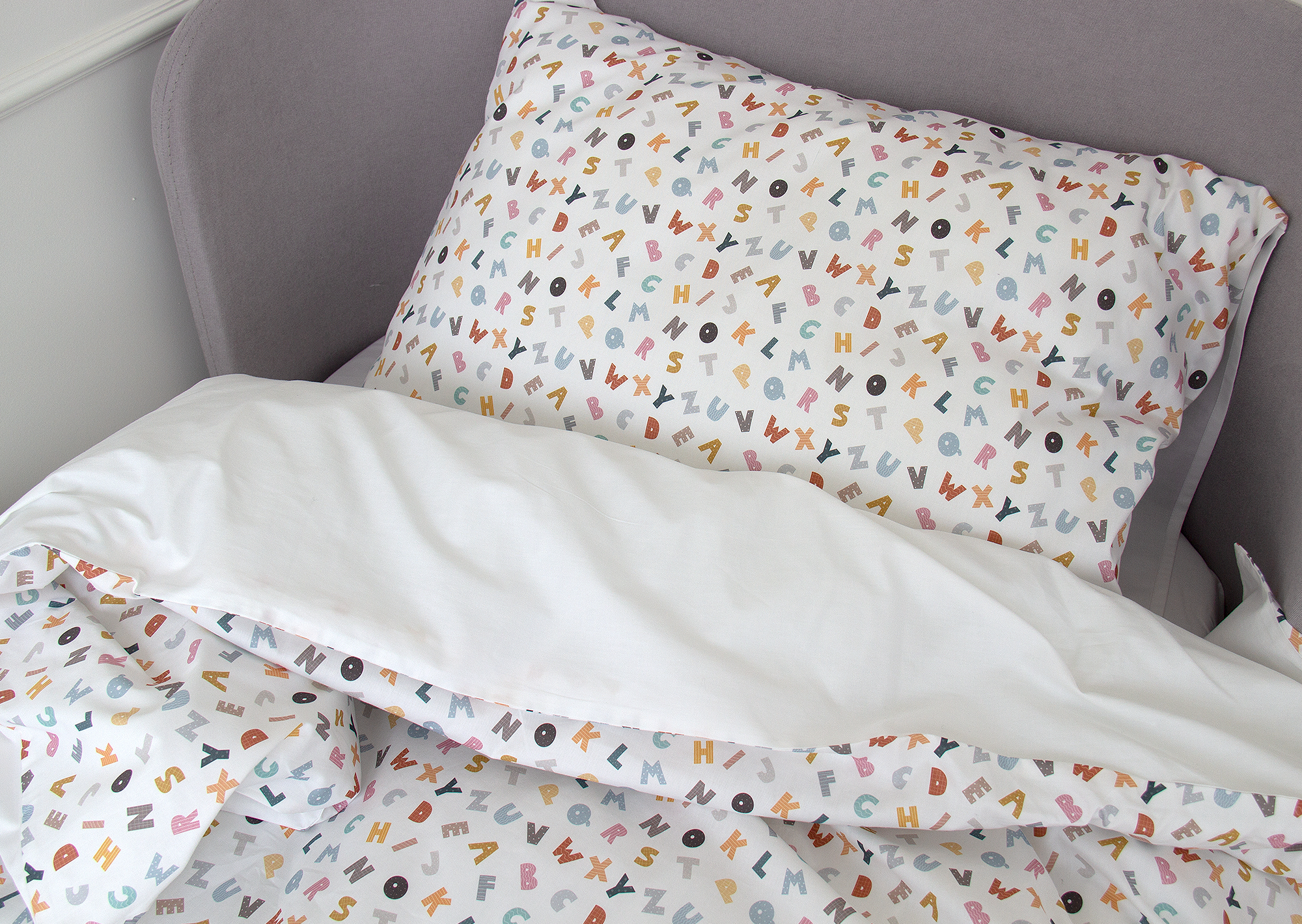 Комплект постельного белья «Разноцветные буквы» (белый, сатин)