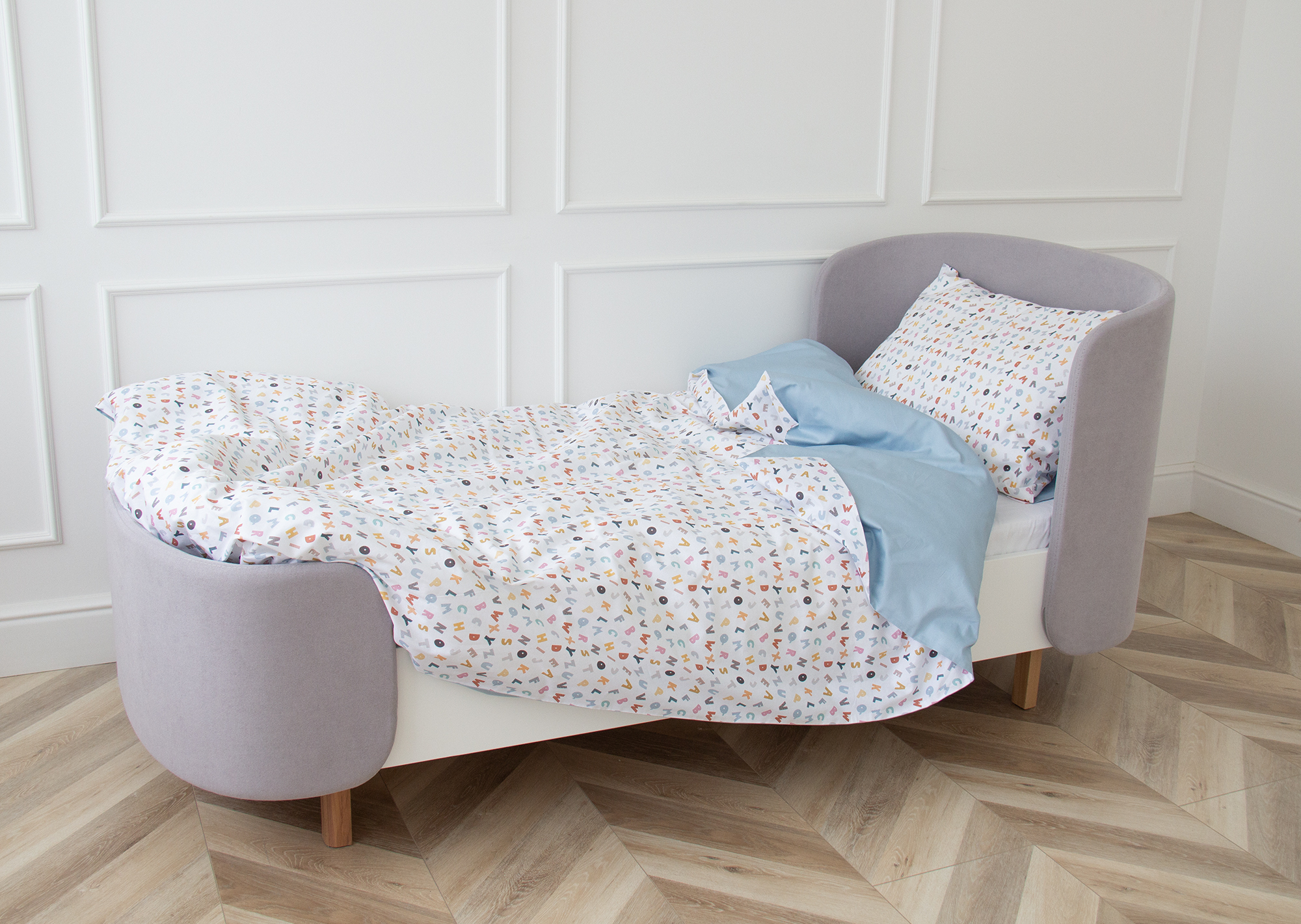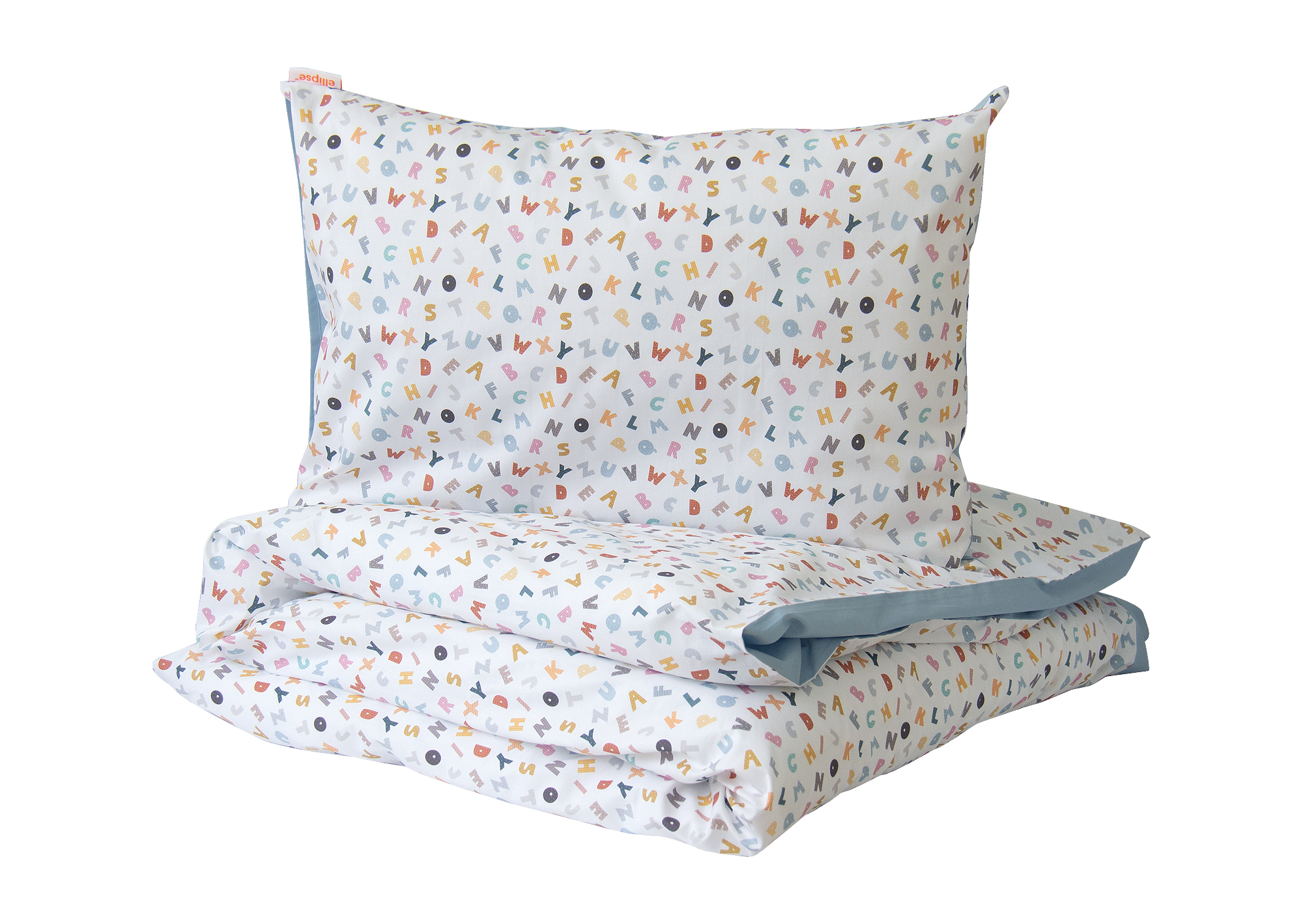 Комплект постельного белья «Разноцветные буквы» (голубой, сатин)