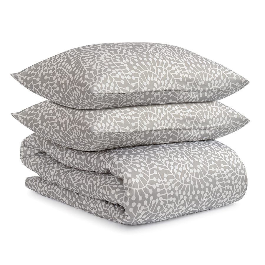 Комплект постельного белья серого цвета с принтом Спелая смородина из коллекции Scandinavian touch станет ярким акцентом в интерьере спальни. Принт со стилизованными ягодами смородины и округлыми линиями веточек, разработанный одним из ведущих финских дизайнерских агентств, гармонично впишется в любой современный интерьер. Сатин плотностью 210 ТС приятен на ощупь, обладает естественным блеском и не теряет внешний вид даже после множества стирок.