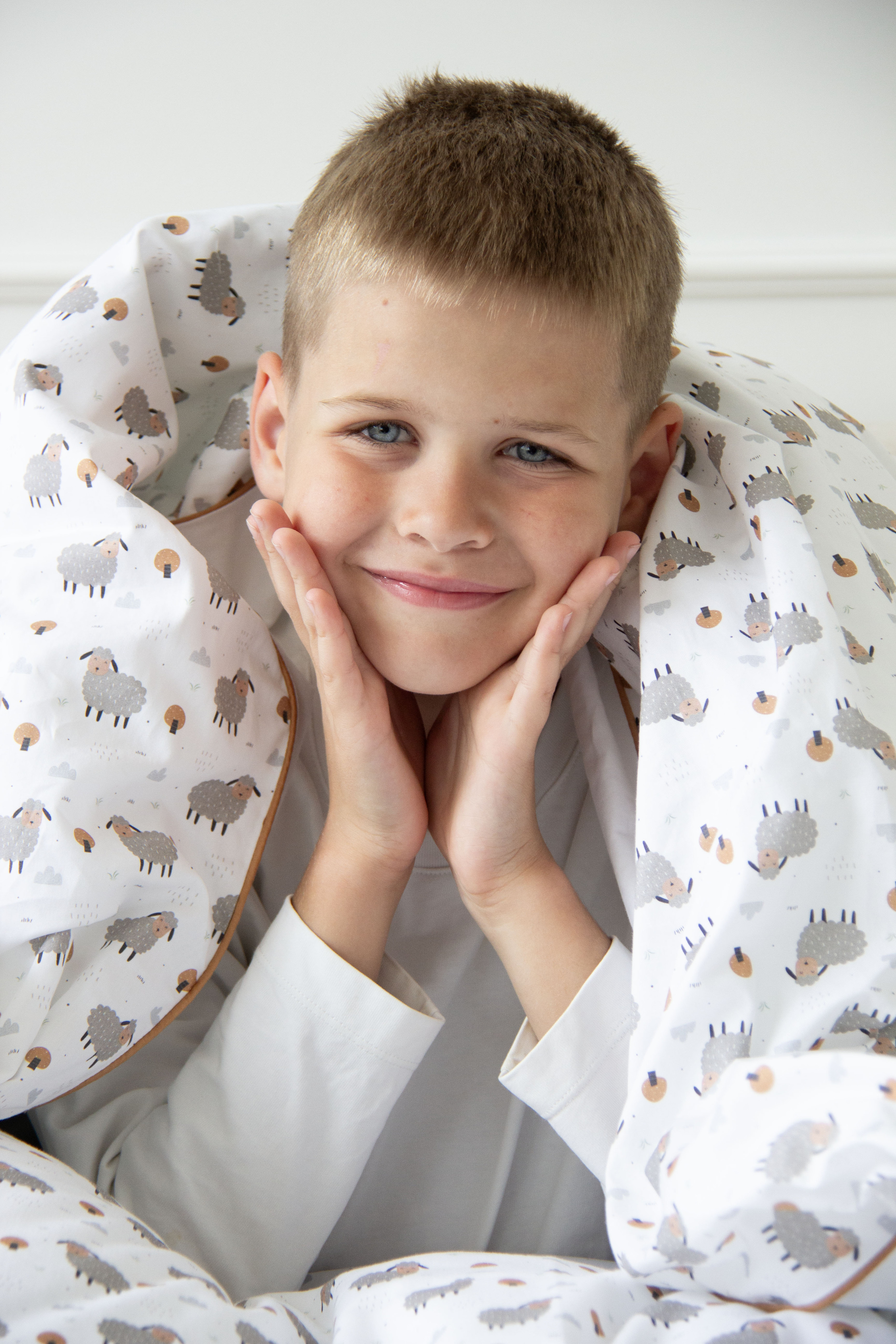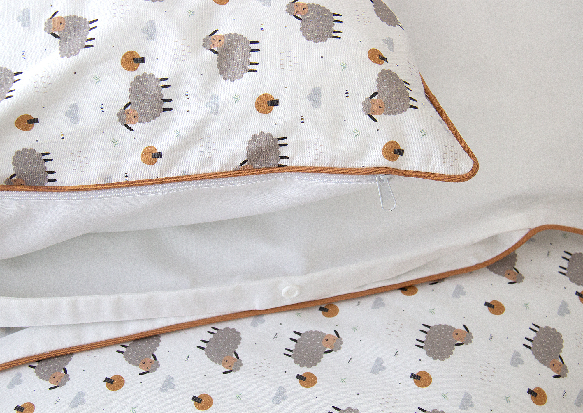 Комплект постельного белья «Серые овечки» (кант, сатин) Состав: пододеяльник 150х200 см, наволочка 70х50 см Материал: 100% хлопок (сатин)