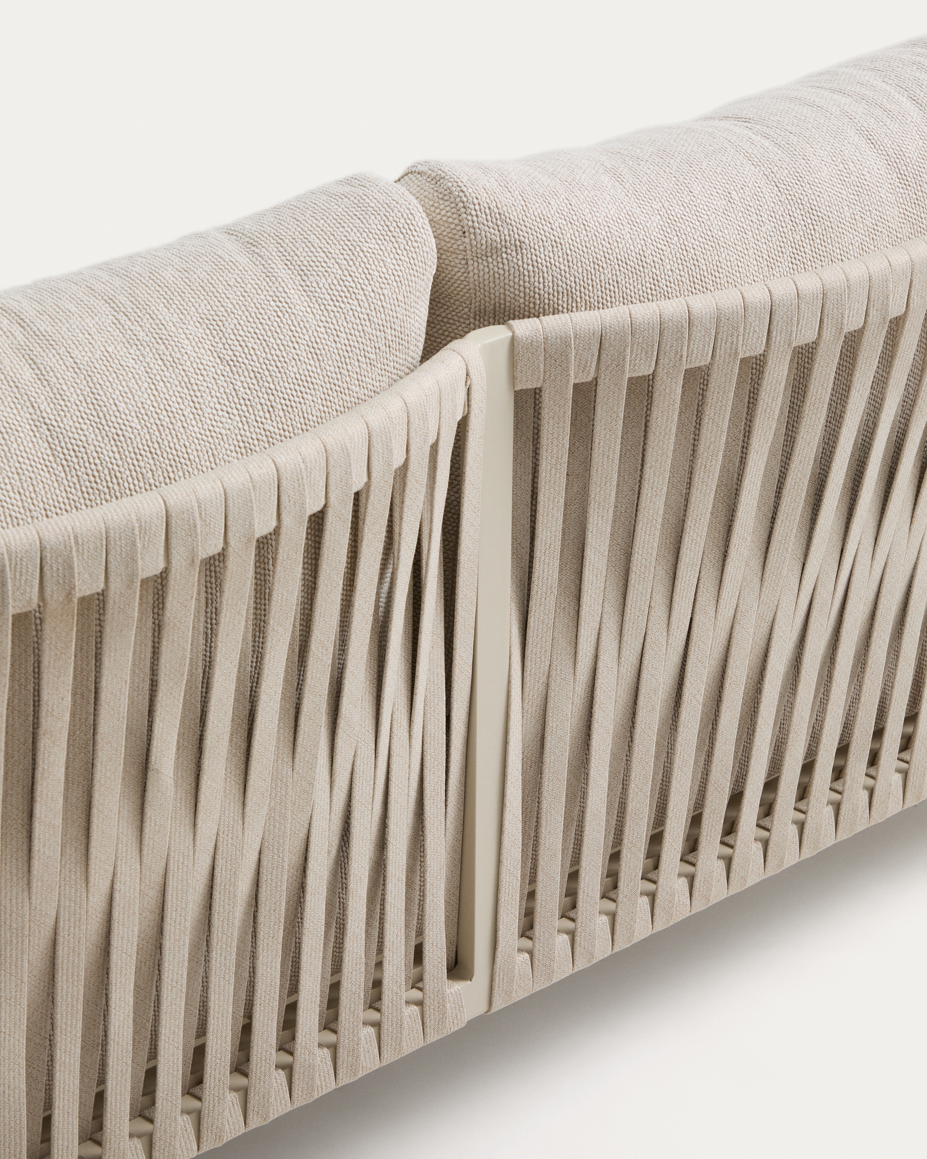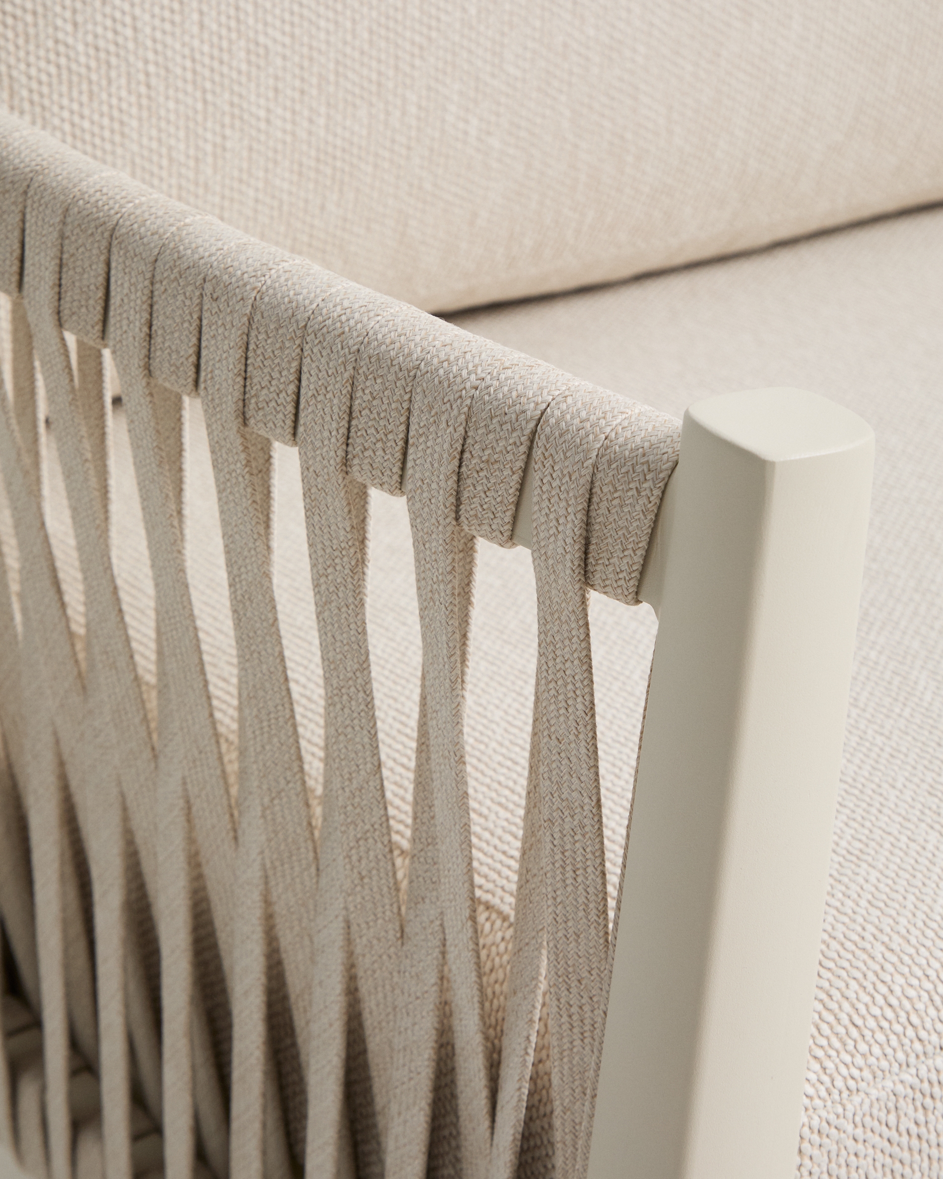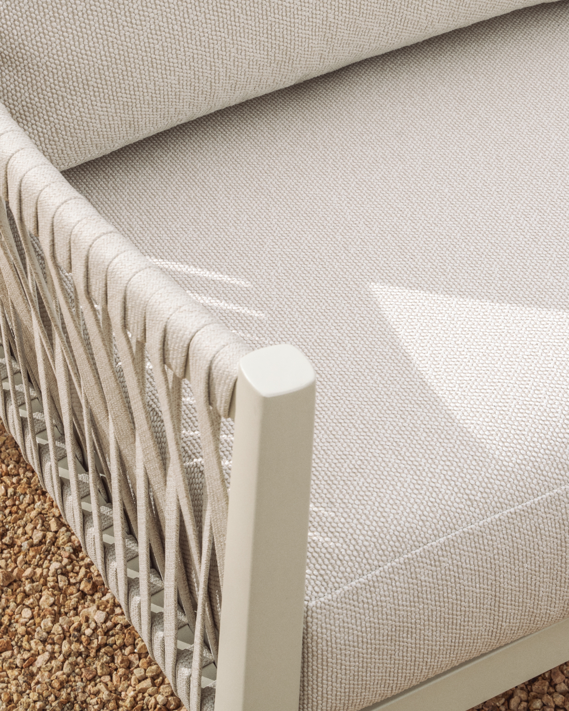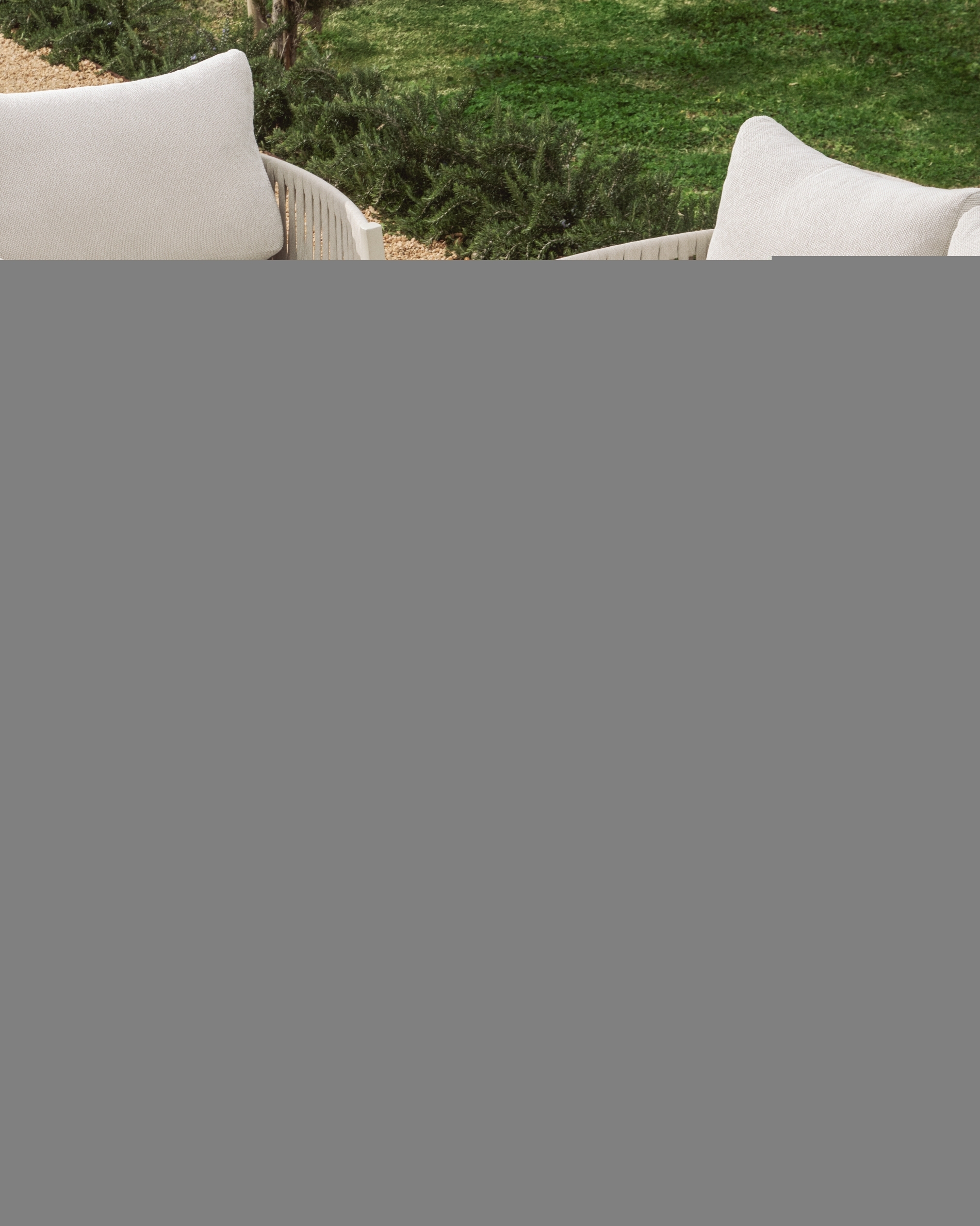 Набор Aleria сочетает в себе комфорт и баланс в каждой части. Его алюминиевая конструкция обеспечивает легкость и устойчивость к ржавчине, коррозии и воздействию солнца. Спинка сплетена из синтетического веревочного шнура, чтобы соответствовать структуре, создавая обволакиваю текстуру, которая повышает комфорт и гармонию всего изделия. Включает подушки со съемными чехлами, которые легко обслуживать и хранить в дождливые дни.
