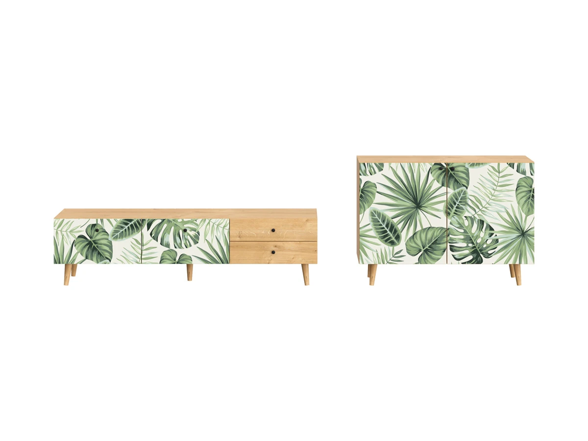 Ножки бук, Корпус - Робиния Брэнсон, Фасад - Принт Monstera