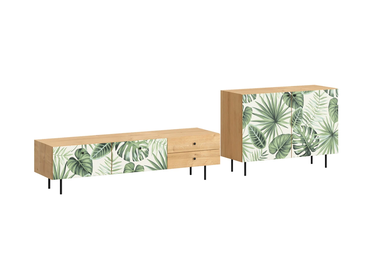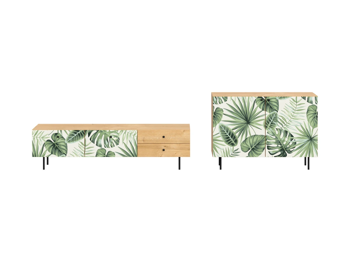 Ножки металлические, Корпус - Робиния Брэнсон, Фасад - Принт Monstera
