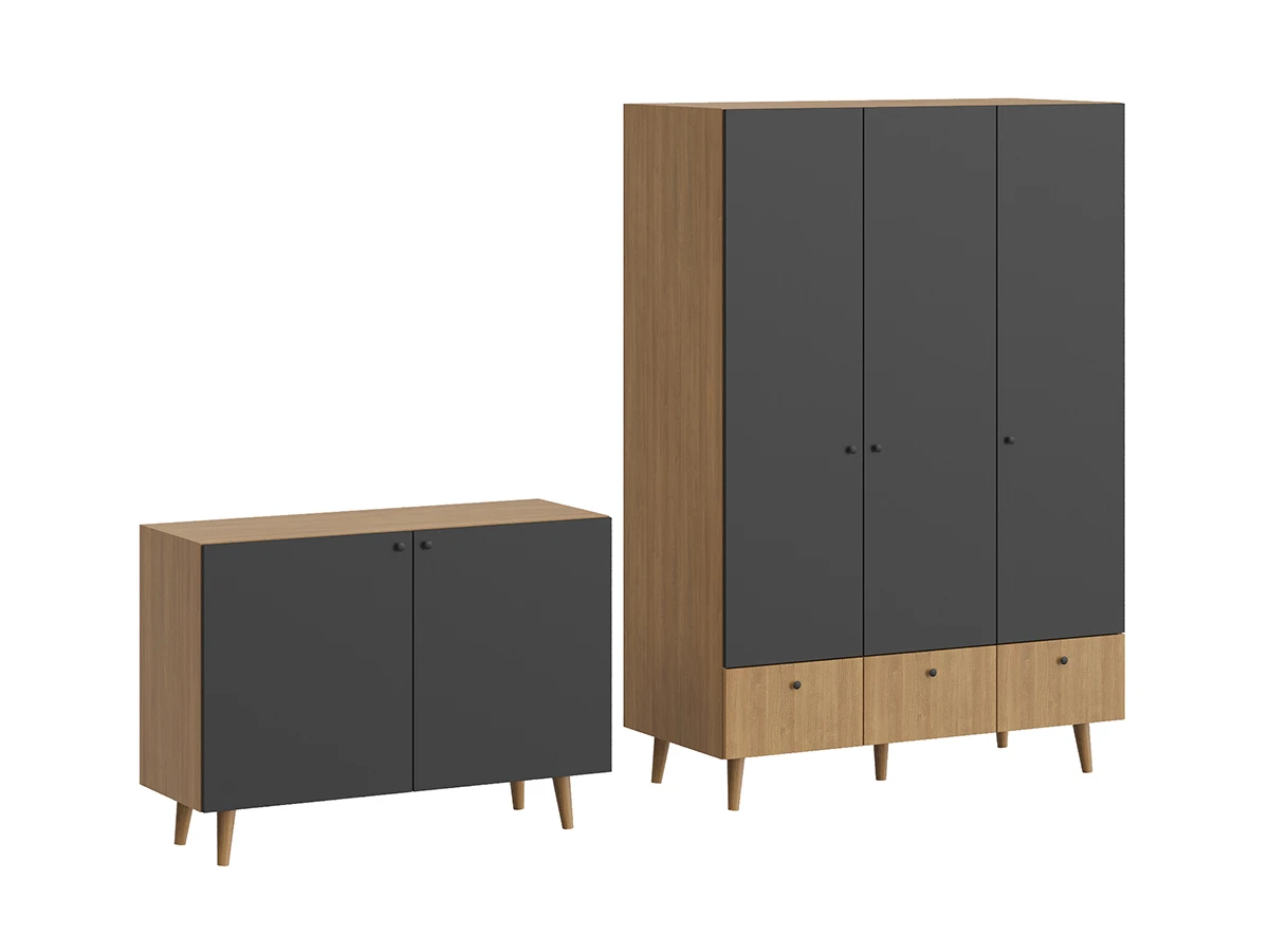 Корпусная мебель, с которой можно составить множество решений для гостиной, детской, кухни, спальни, прихожей, рабочей зоны. Комоды, шкафы, тумбы, столы, витрины, полки, серванты характеризуются универсальностью, многозадачностью, надёжными устойчивыми конструкциями. Имеют выразительный внешний вид, вдохновленный направлением ретро. Смотрятся легко и воздушно за счет деревянных ножек, минимального количества декоративных элементов, спокойных природных оттенков.