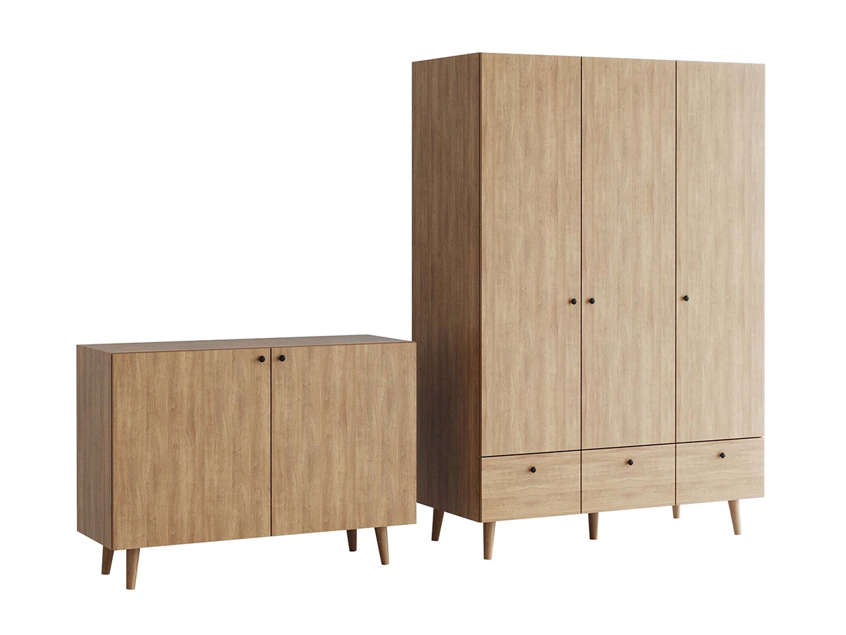 Корпусная мебель, с которой можно составить множество решений для гостиной, детской, кухни, спальни, прихожей, рабочей зоны. Комоды, шкафы, тумбы, столы, витрины, полки, серванты характеризуются универсальностью, многозадачностью, надёжными устойчивыми конструкциями. Имеют выразительный внешний вид, вдохновленный направлением ретро. Смотрятся легко и воздушно за счет деревянных ножек, минимального количества декоративных элементов, спокойных природных оттенков.