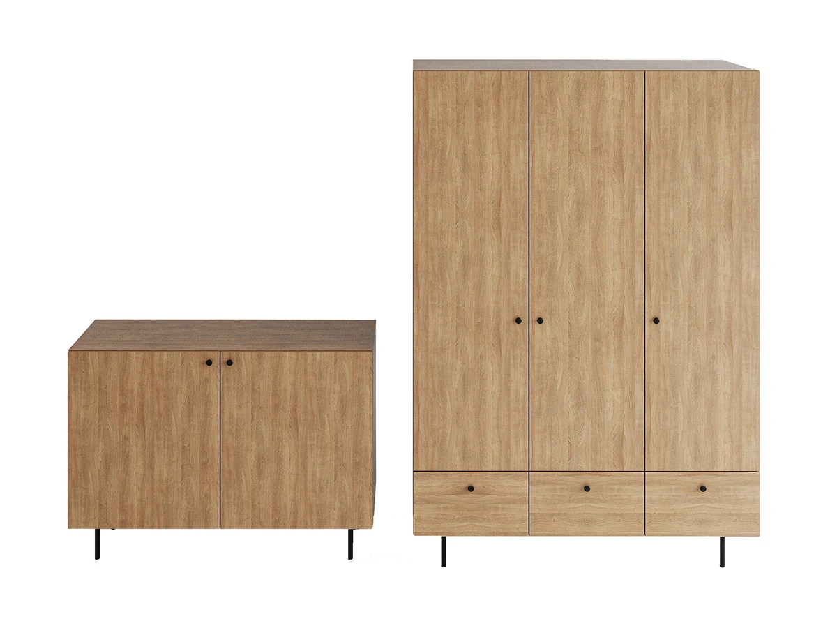 Корпусная мебель, с которой можно составить множество решений для гостиной, детской, кухни, спальни, прихожей, рабочей зоны. Комоды, шкафы, тумбы, столы, витрины, полки, серванты характеризуются универсальностью, многозадачностью, надёжными устойчивыми конструкциями. Имеют выразительный внешний вид, вдохновленный направлением ретро. Смотрятся легко и воздушно за счет деревянных ножек, минимального количества декоративных элементов, спокойных природных оттенков.