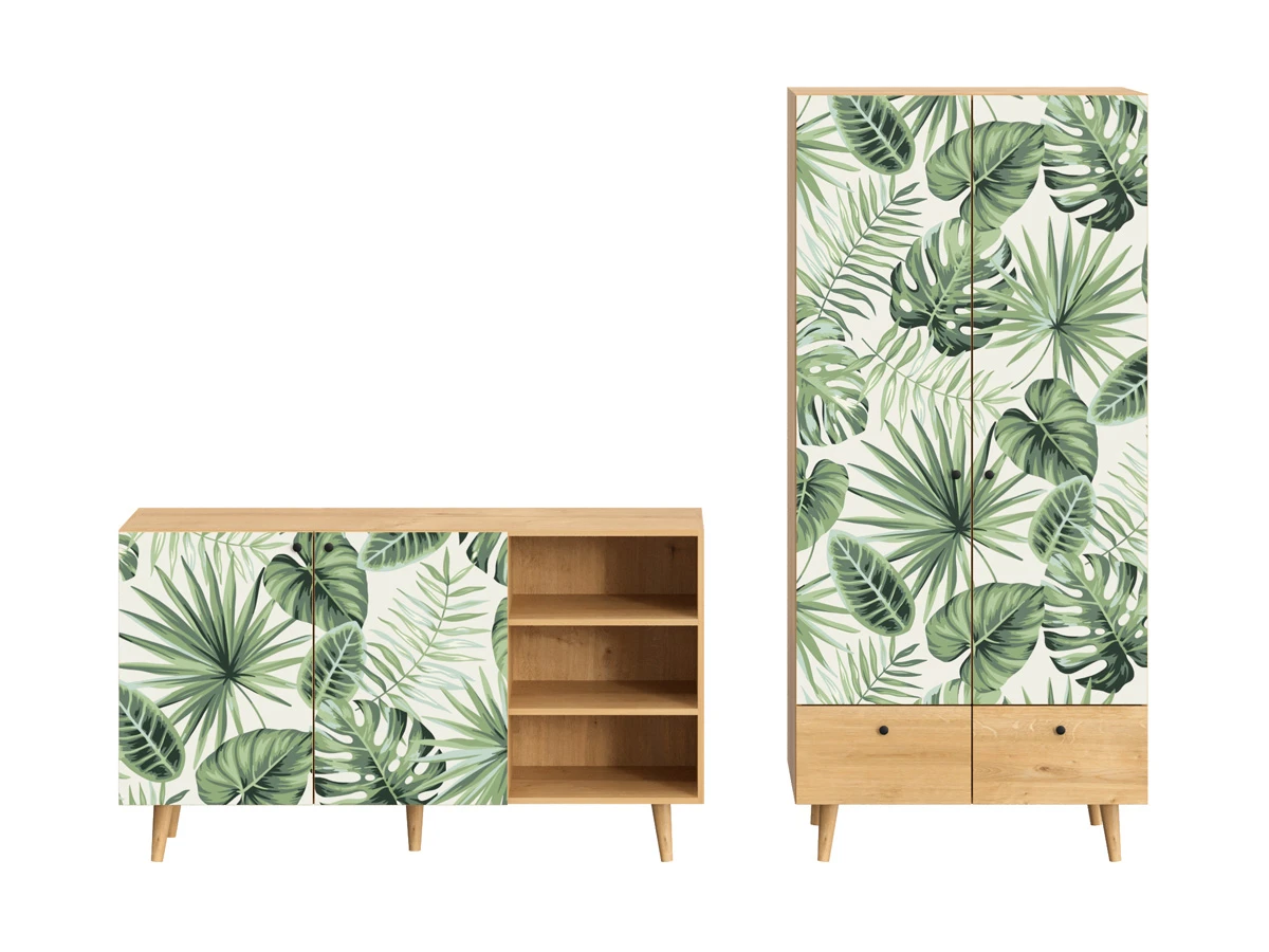 Ножки бук, Корпус - Робиния Брэнсон, Фасад - Принт Monstera