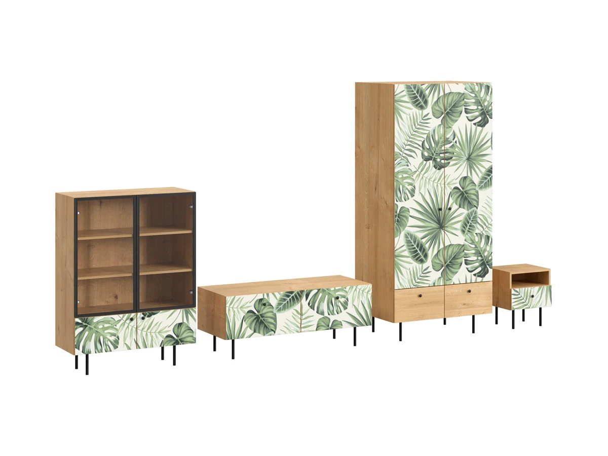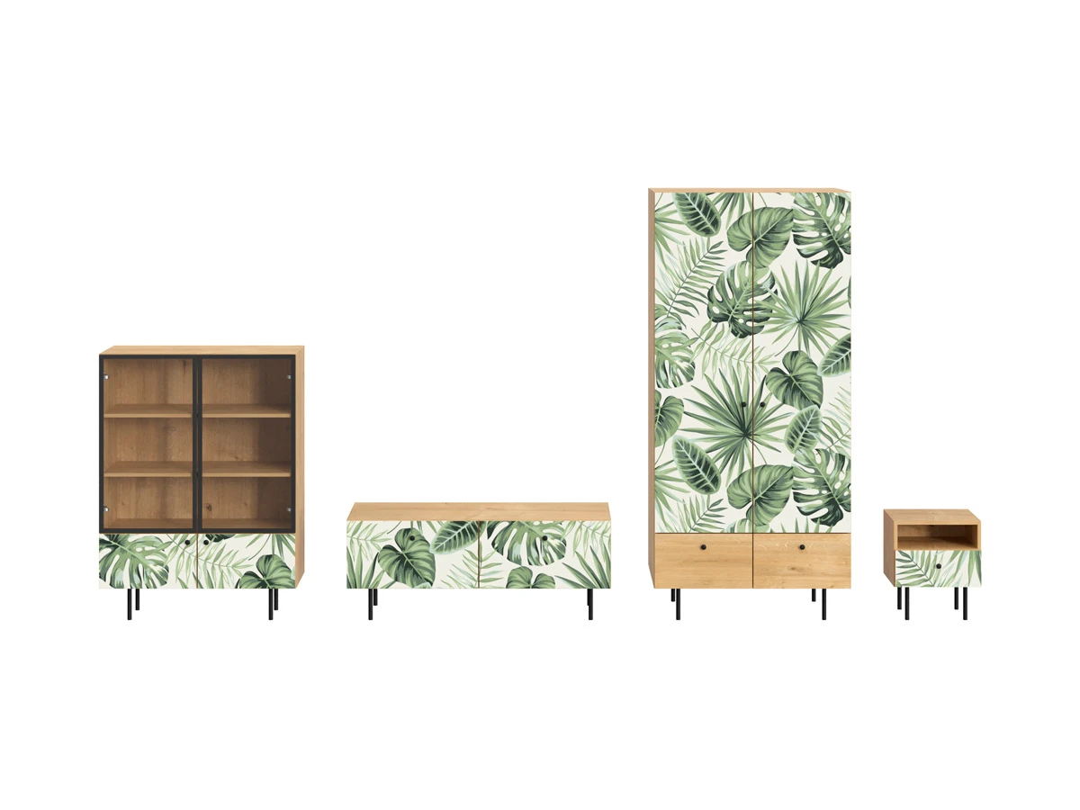 Фасад - Стекло/Принт Monstera, Ножки металлические, Корпус - Робиния Брэнсон