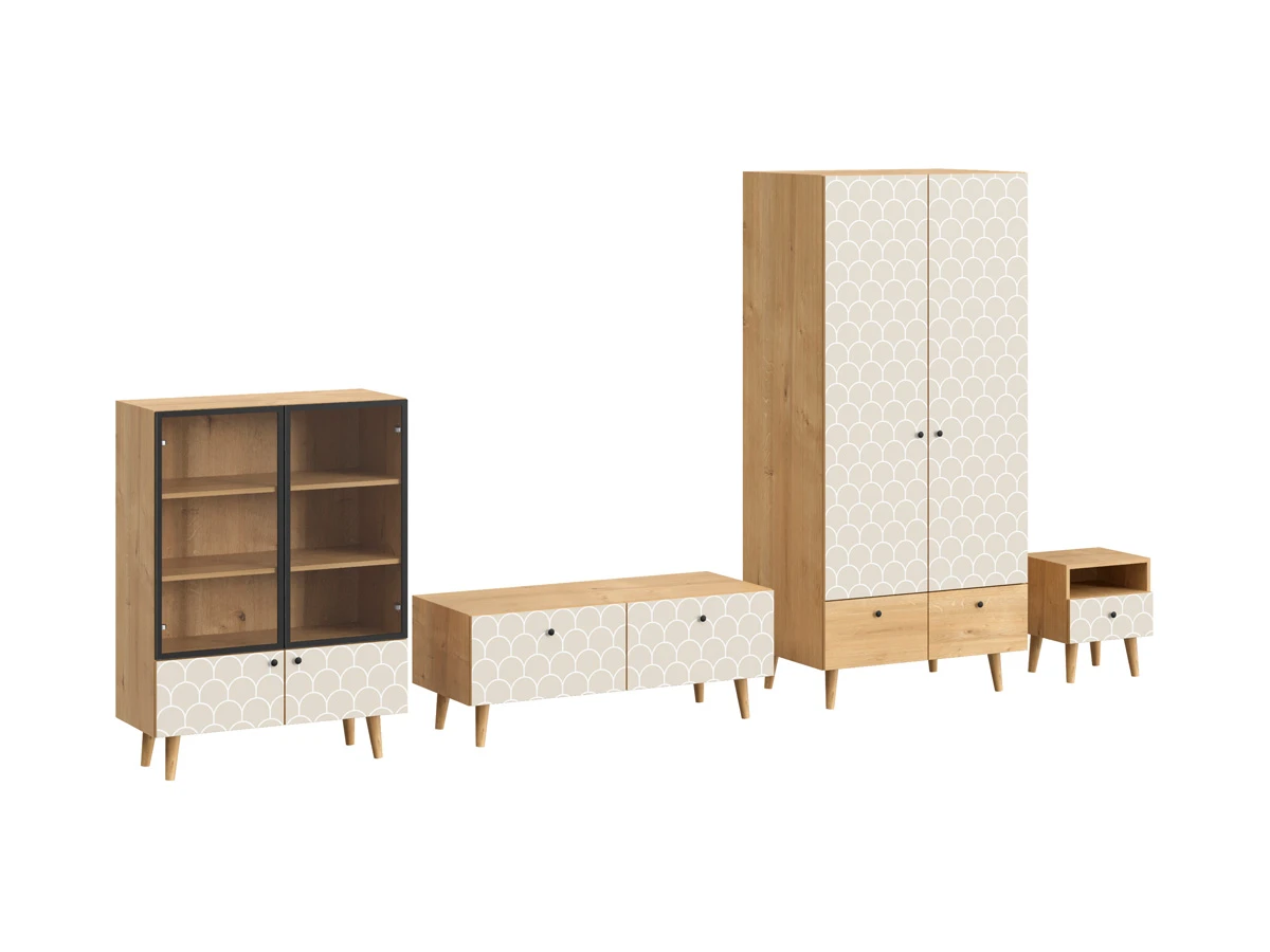 Корпусная мебель, с которой можно составить множество решений для гостиной, детской, кухни, спальни, прихожей, рабочей зоны. Комоды, шкафы, тумбы, столы, витрины, полки, серванты характеризуются универсальностью, многозадачностью, надёжными устойчивыми конструкциями. Имеют выразительный внешний вид, вдохновленный направлением ретро. Смотрятся легко и воздушно за счет деревянных ножек, минимального количества декоративных элементов, спокойных природных оттенков.