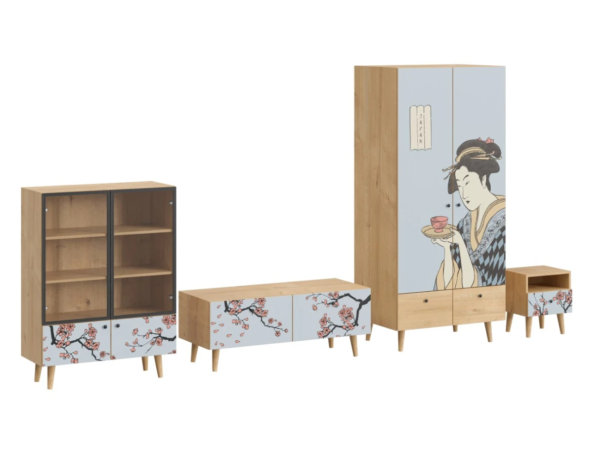 Корпусная мебель, с которой можно составить множество решений для гостиной, детской, кухни, спальни, прихожей, рабочей зоны. Комоды, шкафы, тумбы, столы, витрины, полки, серванты характеризуются универсальностью, многозадачностью, надёжными устойчивыми конструкциями. Имеют выразительный внешний вид, вдохновленный направлением ретро. Смотрятся легко и воздушно за счет деревянных ножек, минимального количества декоративных элементов, спокойных природных оттенков.
