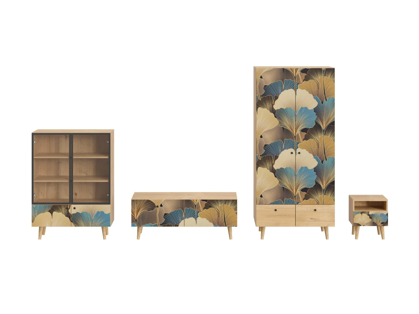 Ножки бук, Фасад - Стекло/Принт Botanic, Корпус - Робиния Брэнсон