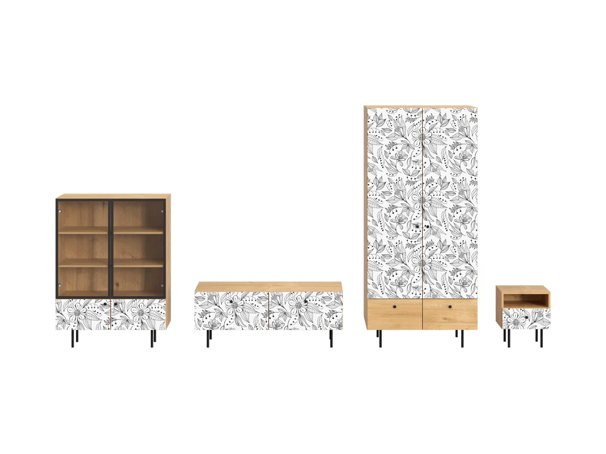 Ножки металлические, Корпус - Робиния Брэнсон, Фасад - Стекло/Принт Flower