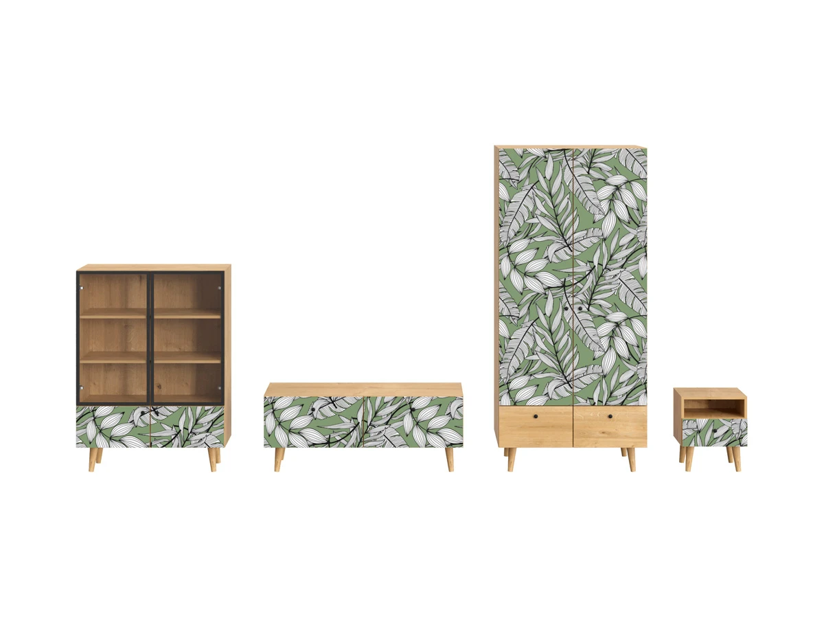 Ножки бук, Фасад - Стекло/Принт Jungle, Корпус - Робиния Брэнсон