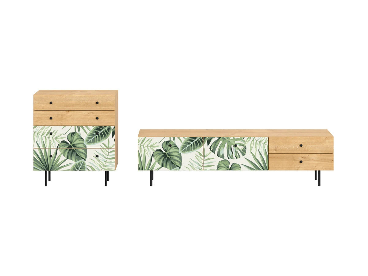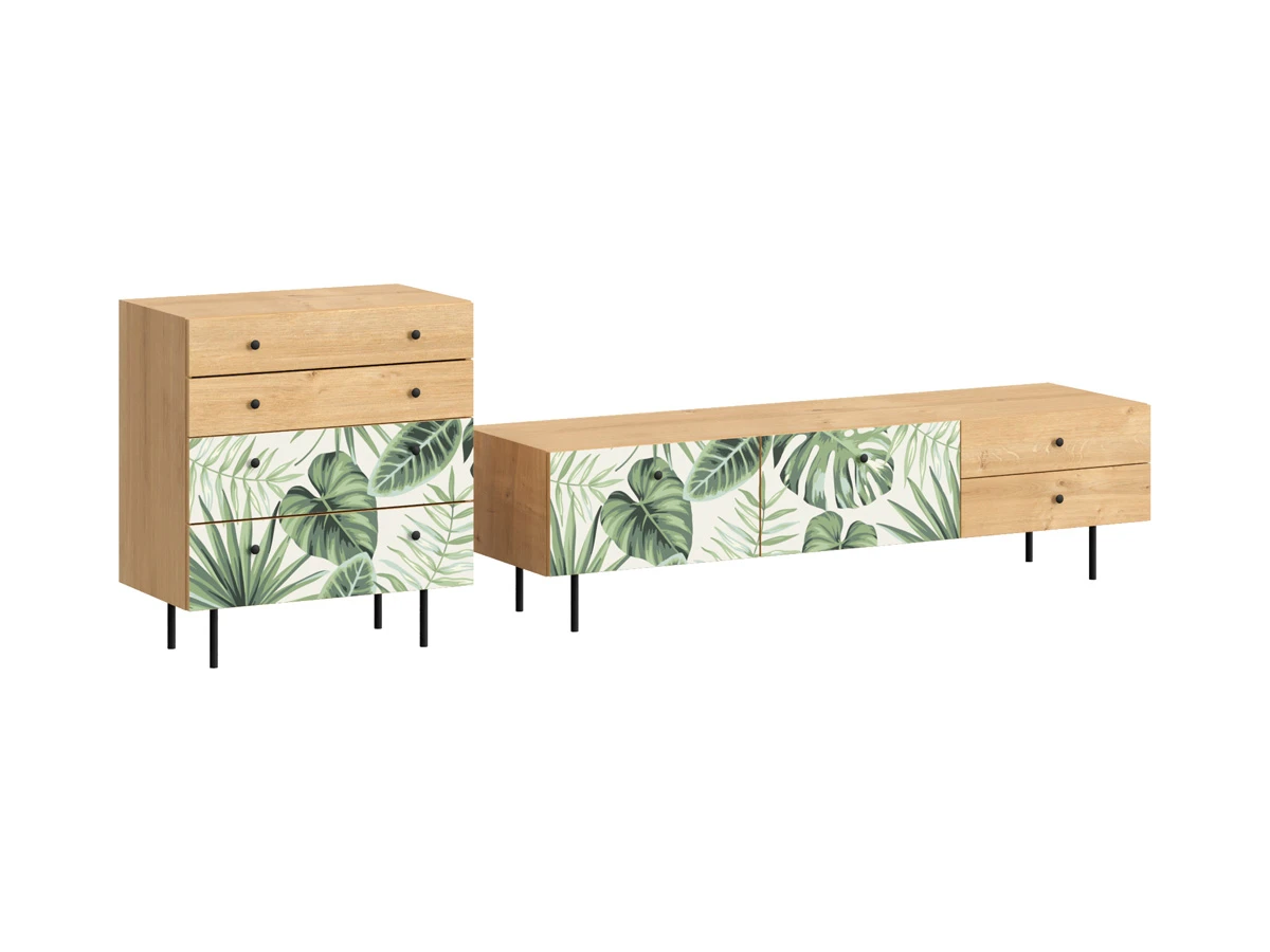 Ножки металлические, Корпус - Робиния Брэнсон, Фасад - Принт Monstera