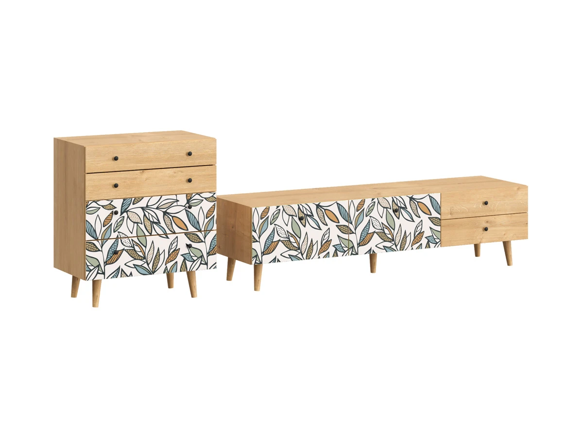 Корпусная мебель, с которой можно составить множество решений для гостиной, детской, кухни, спальни, прихожей, рабочей зоны. Комоды, шкафы, тумбы, столы, витрины, полки, серванты характеризуются универсальностью, многозадачностью, надёжными устойчивыми конструкциями. Имеют выразительный внешний вид, вдохновленный направлением ретро. Смотрятся легко и воздушно за счет деревянных ножек, минимального количества декоративных элементов, спокойных природных оттенков.