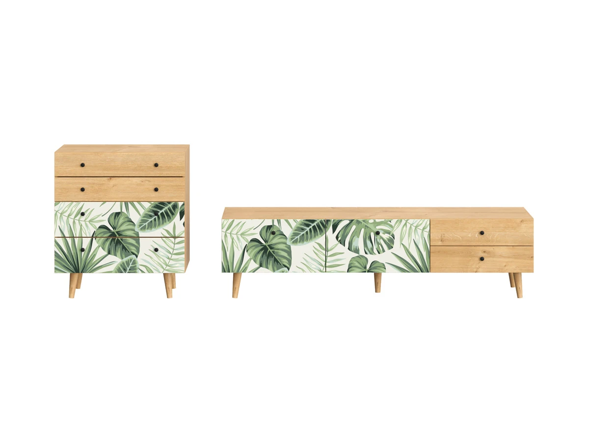Ножки бук, Фасад - Принт Monstera, Корпус - Робиния Брэнсон