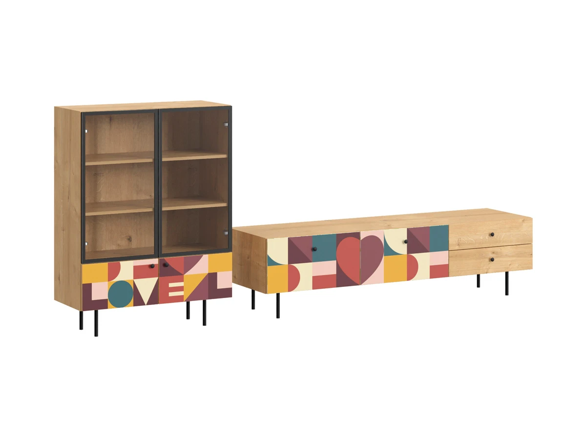 Ножки металлические, Корпус - Робиния Брэнсон, Фасад - Стекло/Принт Love