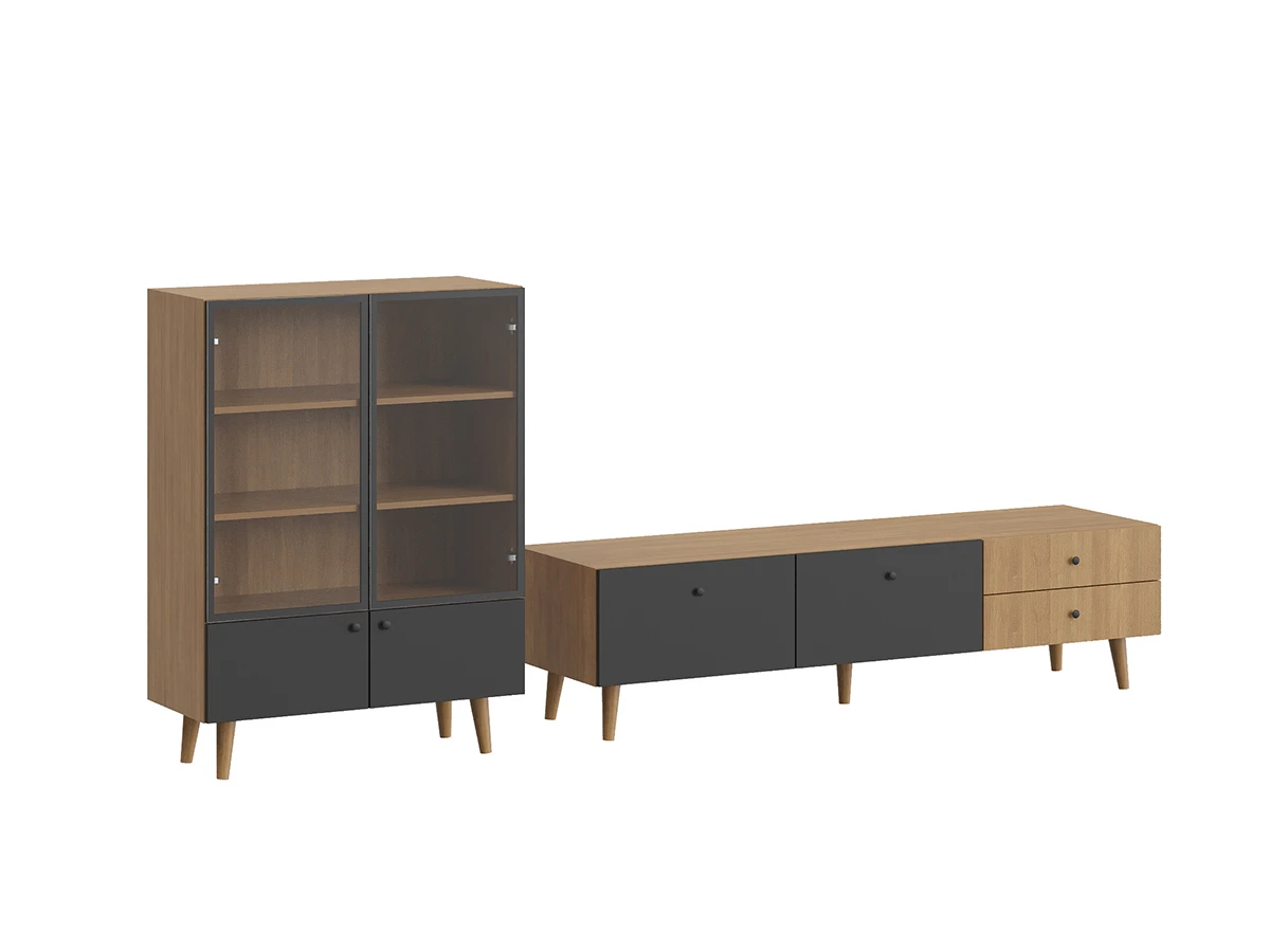 Корпусная мебель, с которой можно составить множество решений для гостиной, детской, кухни, спальни, прихожей, рабочей зоны. Комоды, шкафы, тумбы, столы, витрины, полки, серванты характеризуются универсальностью, многозадачностью, надёжными устойчивыми конструкциями. Имеют выразительный внешний вид, вдохновленный направлением ретро. Смотрятся легко и воздушно за счет деревянных ножек, минимального количества декоративных элементов, спокойных природных оттенков.