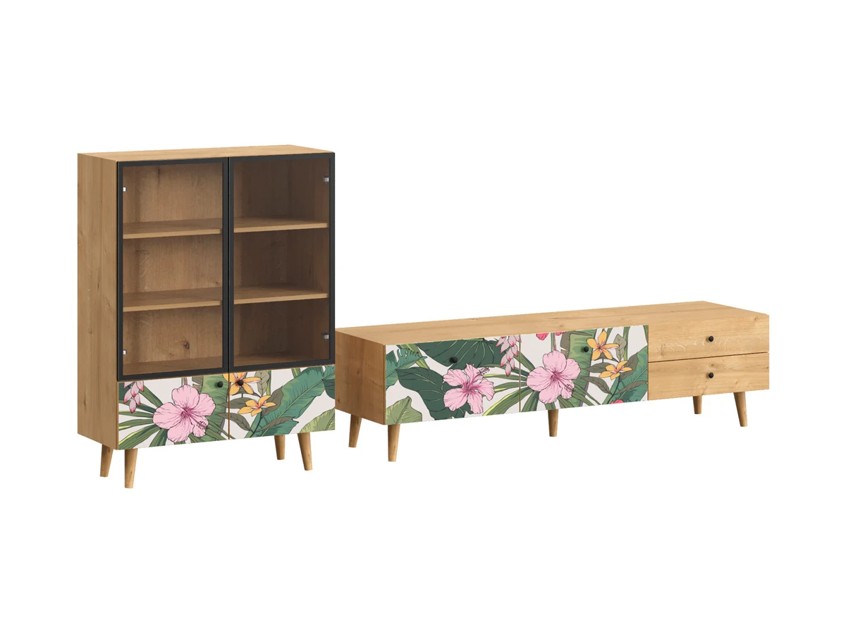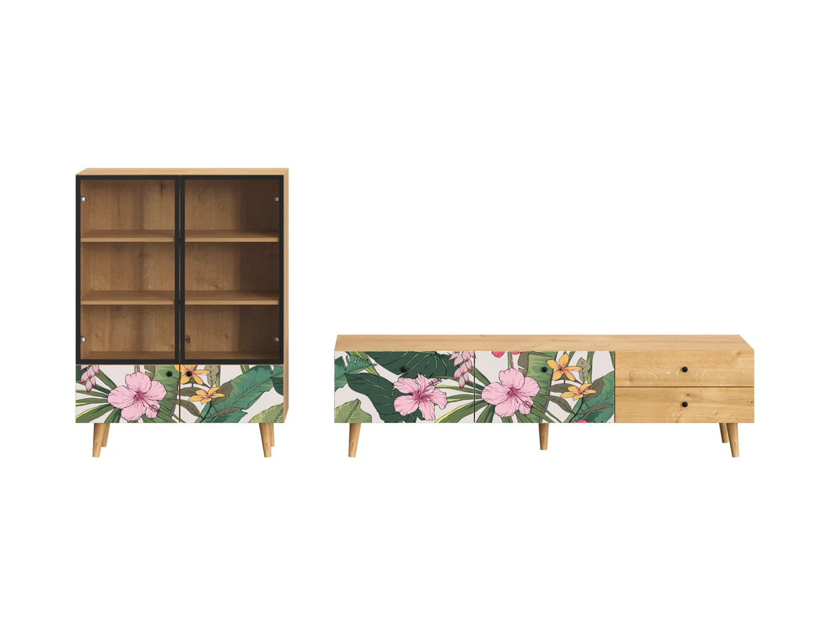 Ножки бук, Фасад - Стекло/Принт Tropics, Корпус - Робиния Брэнсон