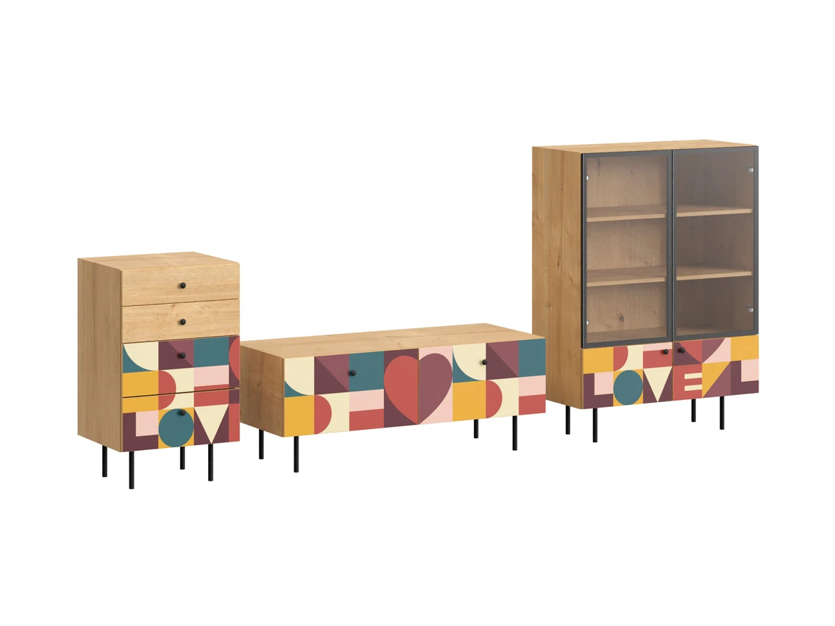 Ножки металлические, Корпус - Робиния Брэнсон, Фасад - Стекло/Принт Love