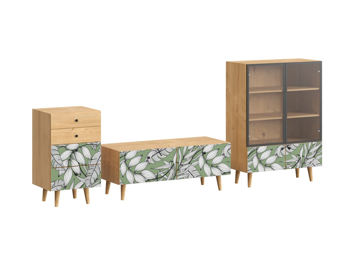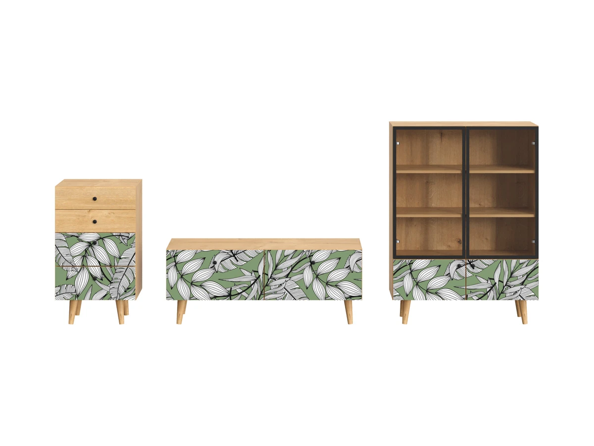 Ножки бук, Фасад - Стекло/Принт Jungle, Корпус - Робиния Брэнсон