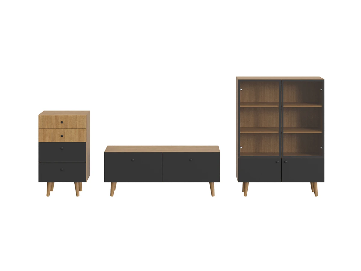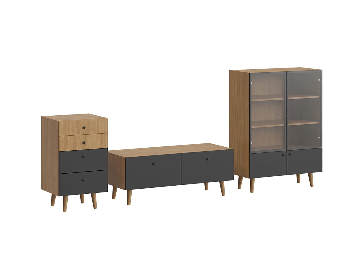 Корпусная мебель, с которой можно составить множество решений для гостиной, детской, кухни, спальни, прихожей, рабочей зоны. Комоды, шкафы, тумбы, столы, витрины, полки, серванты характеризуются универсальностью, многозадачностью, надёжными устойчивыми конструкциями. Имеют выразительный внешний вид, вдохновленный направлением ретро. Смотрятся легко и воздушно за счет деревянных ножек, минимального количества декоративных элементов, спокойных природных оттенков.